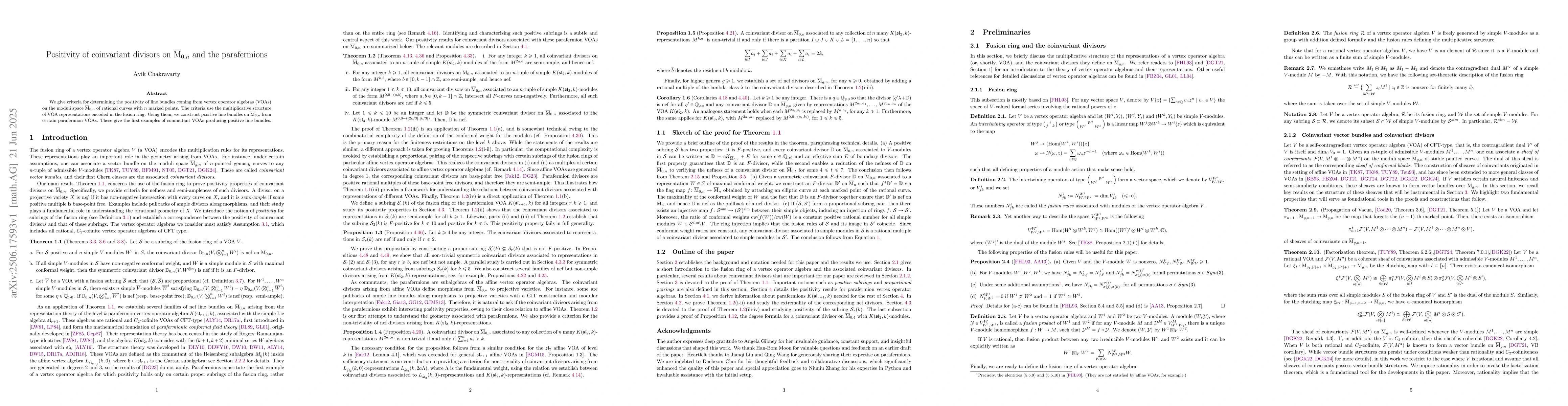 We give criteria for determining the positivity of line bundles coming from vertex operator algebras (VOAs) on the moduli space $\overline{\mathrm{M}}_{0,n}$ of rational curves with $n$ marked points. The criteria use the multiplicative structure of VOA representations encoded in the fusion ring. Using them, we construct positive line bundles on $\overline{\mathrm{M}}_{0,n}$ from certain parafermion VOAs. These give the first examples of commutant VOAs producing positive line bundles.