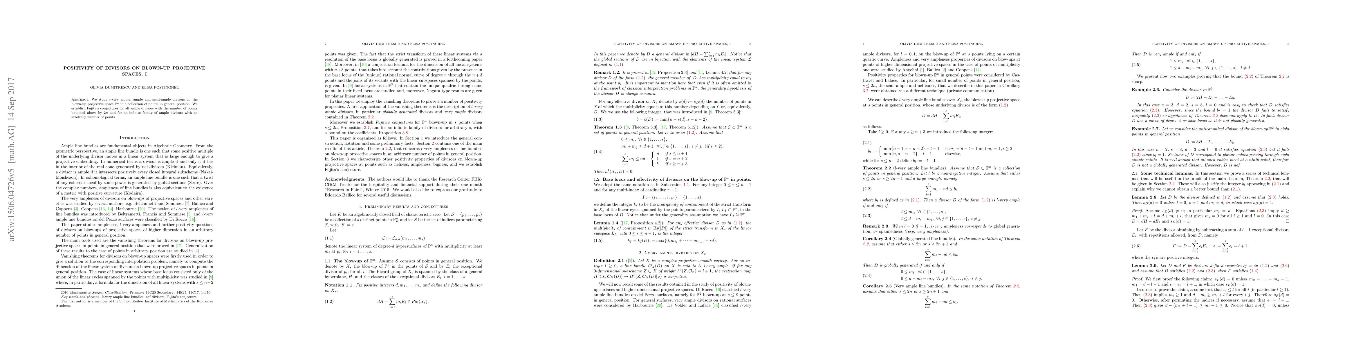 Summary: This paper investigates positivity properties of divisors on blown-up projective spaces, proving Fujita's conjectures for ample divisors with up to $2n$ points and for infinite families of ample divisors regardless of point count.