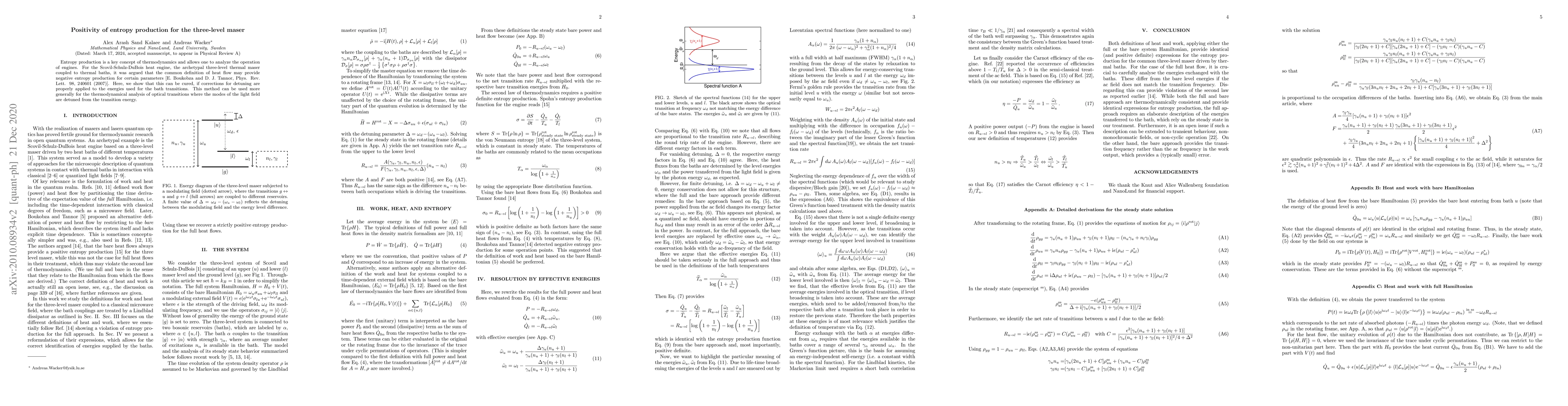 Entropy production is a key concept of thermodynamics and allows one to analyze the operation of engines. For the Scovil-Schulz-DuBois heat engine, the archetypal three-level thermal maser coupled to thermal baths, it was argued that the common definition of heat flow may provide negative entropy production for certain parameters [E. Boukobza and D. J. Tannor, Phys. Rev. Lett. 98, 240601 (2007)]. Here, we show that this can be cured, if corrections for detuning are properly applied to the energies used for the bath transitions. This method can be used more generally for the thermodynamical analysis of optical transitions where the modes of the light field are detuned from the transition energy.