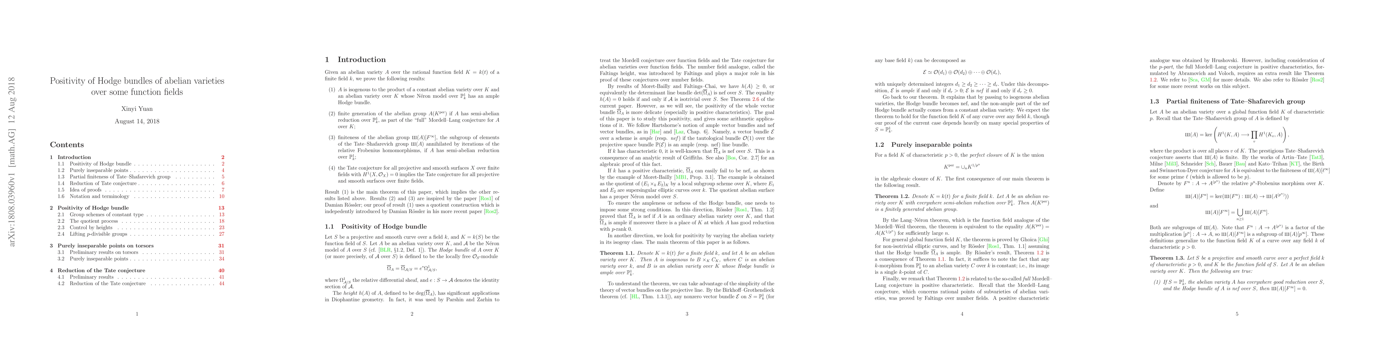This paper establishes the positivity of Hodge bundles for abelian varieties defined over global function fields, contributing to our understanding of the Tate-Shafarevich group and the Tate conjecture for surfaces over finite fields.