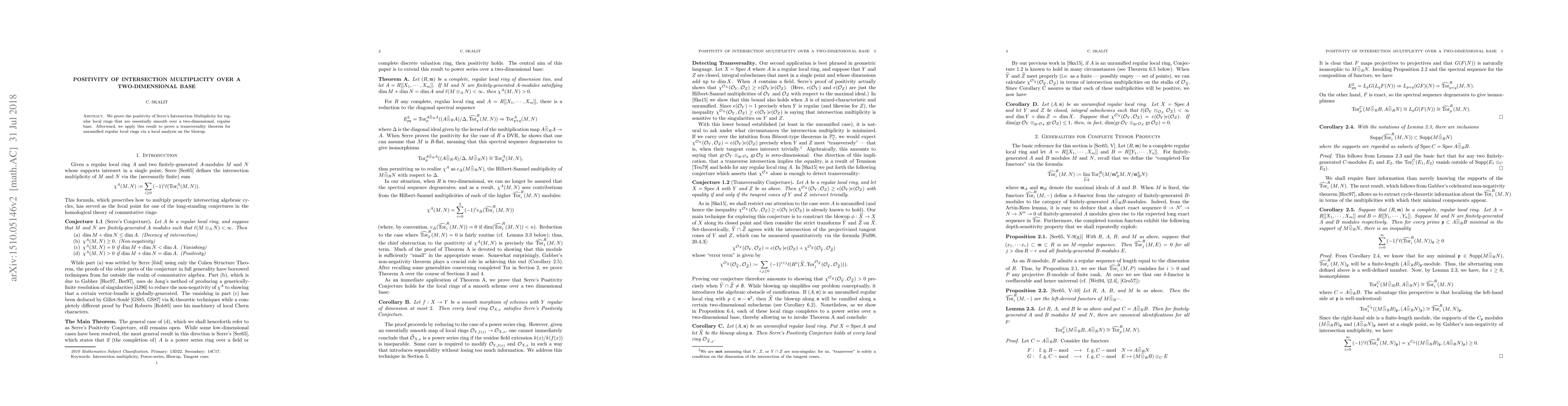 This paper proves Serre's Intersection Multiplicity Conjecture for formal power series over complete, two-dimensional regular local rings, extending the result to smooth extensions of such bases. It also explores the link between intersection multiplicity and transversality in unramified settings through local analysis on blowups.