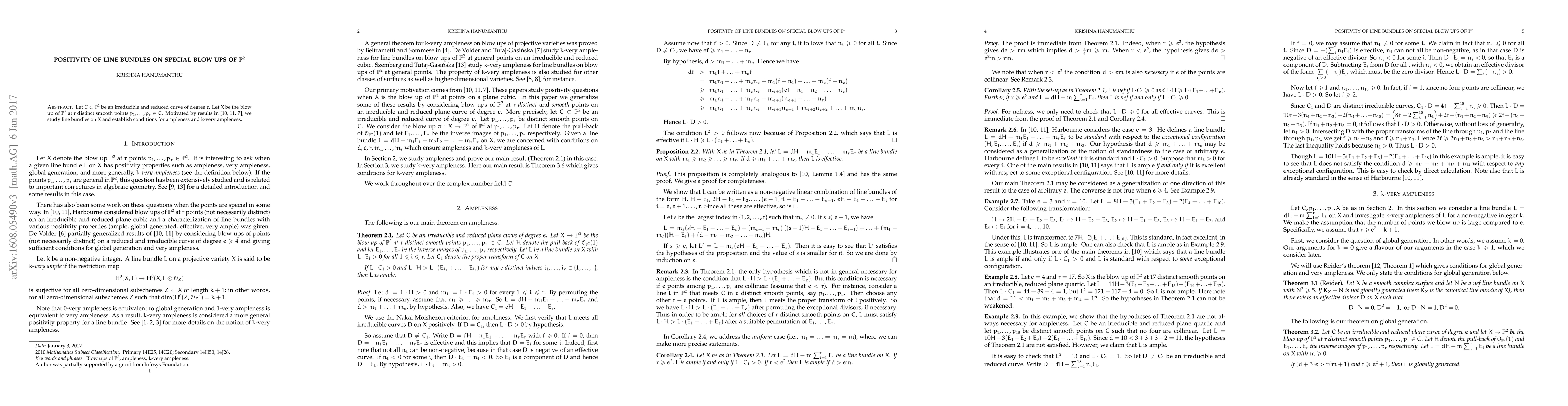 Let $C \subset \mathbb{P}^2$ be an irreducible and reduced curve of degree $e > 0$. Let $X$ be the blow up of $\mathbb{P}^2$ at $r$ distinct smooth points $p_1,\ldots,p_r \in C$. We study line bundles on $X$ and establish conditions for ampleness and $k$-very ampleness.