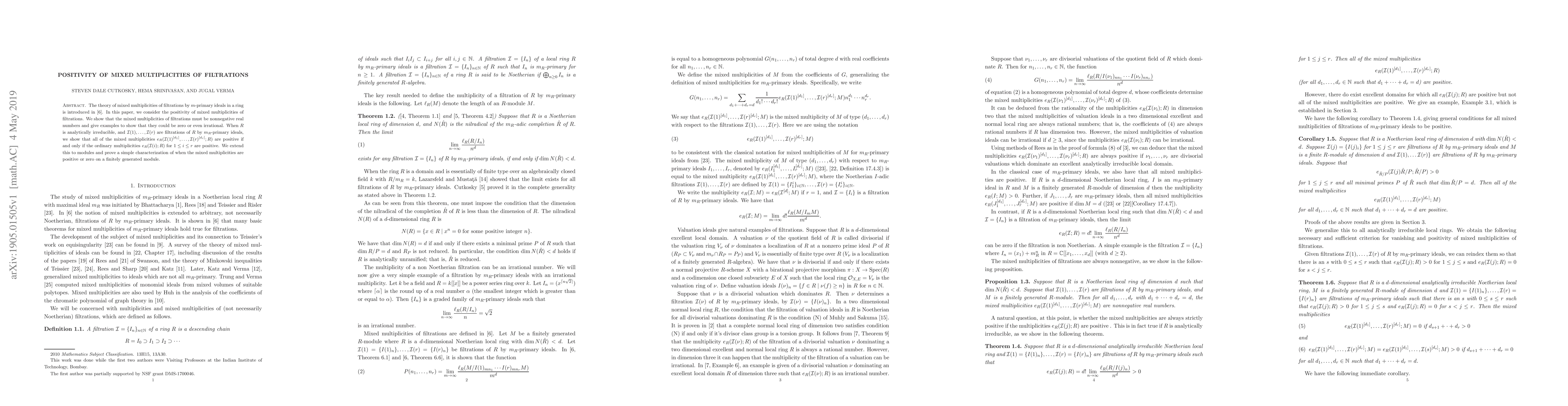 This paper establishes the nonnegativity of mixed multiplicities of filtrations by $m$-primary ideals in a ring, demonstrating that they can be zero or irrational. It provides a condition for positivity of these mixed multiplicities in analytically irreducible rings and extends the findings to finitely generated modules.