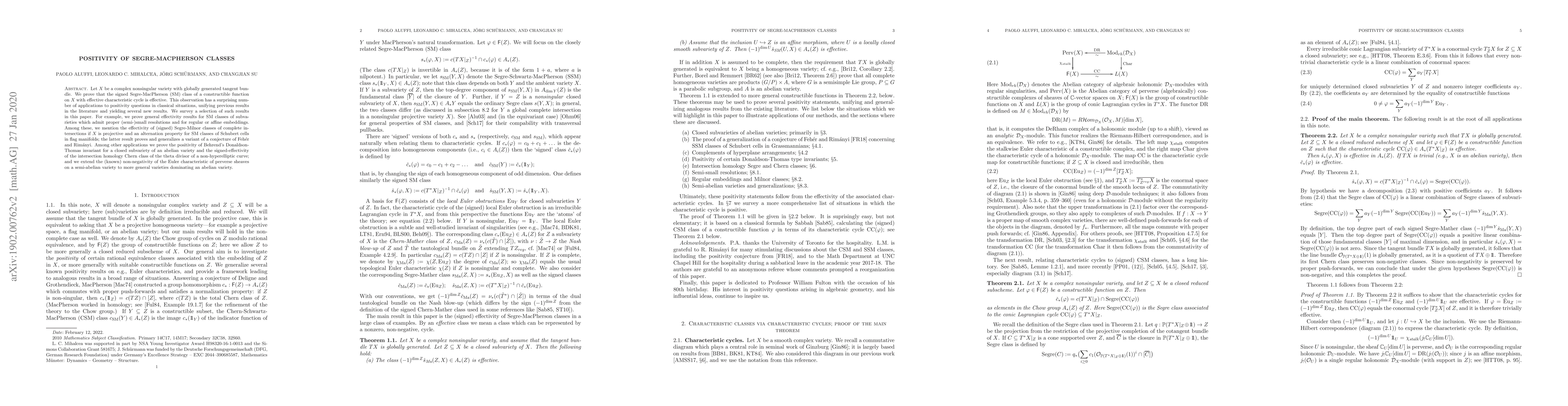 Let $X$ be a complex nonsingular variety with globally generated tangent bundle. We prove that the signed Segre-MacPherson (SM) class of a constructible function on $X$ with effective characteristic cycle is effective. This observation has a surprising number of applications to positivity questions in classical situations, unifying previous results in the literature and yielding several new results. We survey a selection of such results in this paper. For example, we prove general effectivity results for SM classes of subvarieties which admit proper (semi-)small resolutions and for regular or affine embeddings. Among these, we mention the effectivity of (signed) Segre-Milnor classes of complete intersections if $X$ is projective and an alternation property for SM classes of Schubert cells in flag manifolds; the latter result proves and generalizes a variant of a conjecture of Feh\'er and Rim\'anyi. Among other applications we prove the positivity of Behrend's Donaldson-Thomas invariant for a closed subvariety of an abelian variety and the signed-effectivity of the intersection homology Chern class of the theta divisor of a non-hyperelliptic curve; and we extend the (known) non-negativity of the Euler characteristic of perverse sheaves on a semi-abelian variety to more general varieties dominating an abelian variety.