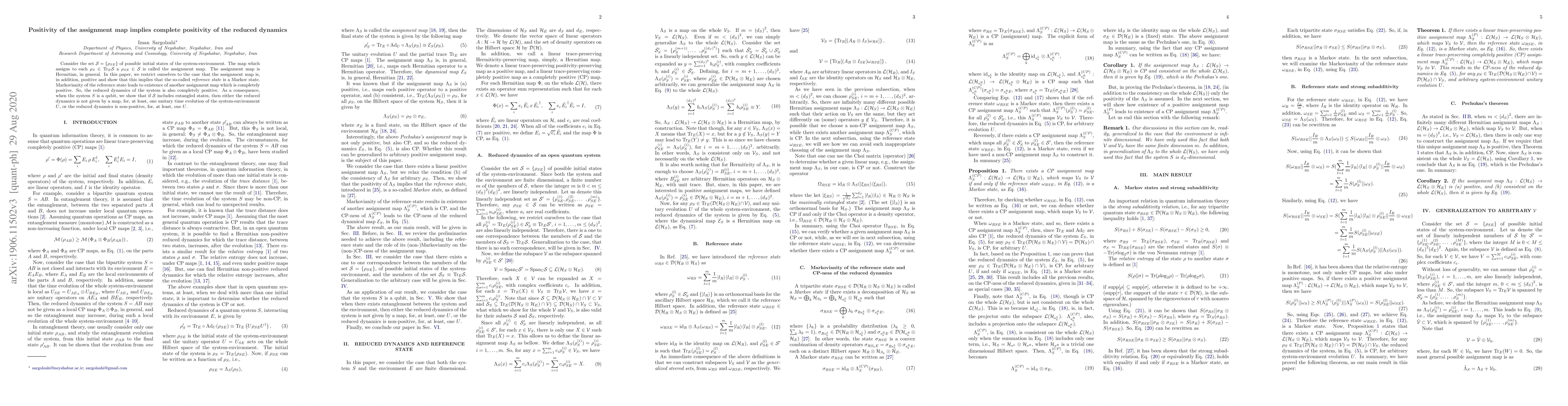 Consider the set $\mathcal{S}=\lbrace\rho_{SE}\rbrace$ of possible initial states of the system-environment. The map which assigns to each $\rho_{S}\in \mathrm{Tr}_{E}\mathcal{S}$ a $\rho_{SE}\in \mathcal{S}$ is called the assignment map. The assignment map is Hermitian, in general. In this paper, we restrict ourselves to the case that the assignment map is, in addition, positive and show that this implies that the so-called reference state is a Markov state. Markovianity of the reference state leads to existence of another assignment map which is completely positive. So, the reduced dynamics of the system is also completely positive. As a consequence, when the system $S$ is a qubit, we show that if $\mathcal{S}$ includes entangled states, then either the reduced dynamics is not given by a map, for, at least, one unitary time evolution of the system-environment $U$, or the reduced dynamics is non-positive, for, at least, one $U$.