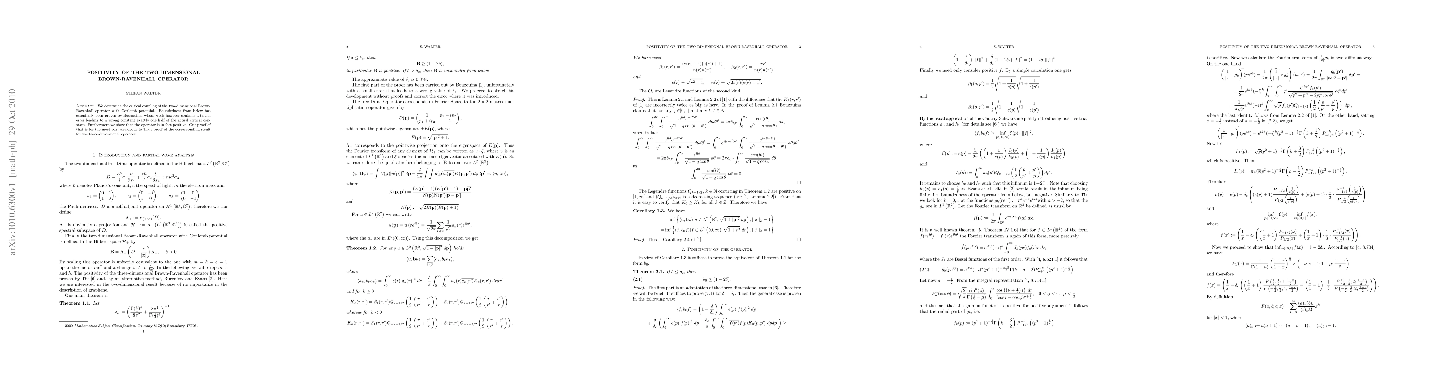 We determine the critical coupling of the two-dimensional Brown-Ravenhall operator with Coulomb potential. Boundedness from below has essentially been proven by Bouzouina, whose work however contains a trivial error leading to a wrong constant exactly one half of the actual critical constant. Furthermore we show that the operator is in fact positive. Our proof of that is for the most part analogous to Tix's proof of the corresponding result for the three-dimensional operator.