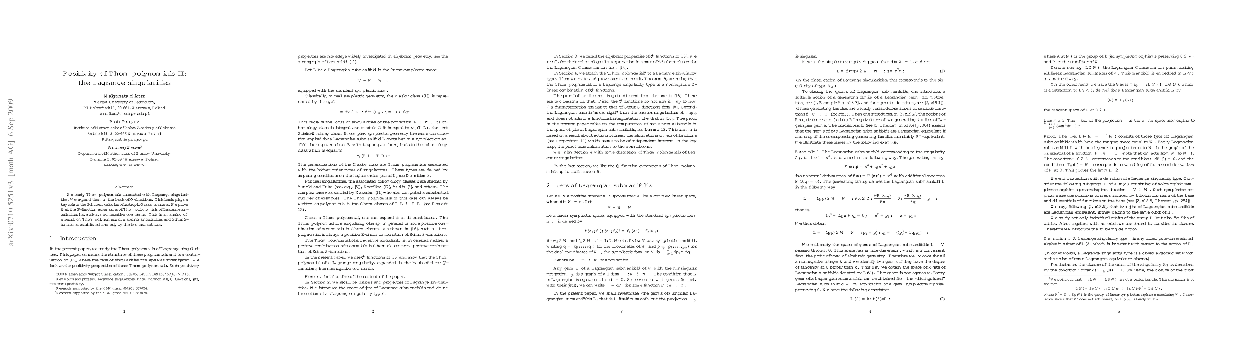 Summary: This paper demonstrates that Thom polynomials associated with Lagrangian singularities possess nonnegative coefficients when expressed in terms of Q-functions, leveraging the nonnegativity of cone classes for globally generated bundles as the primary proof technique.