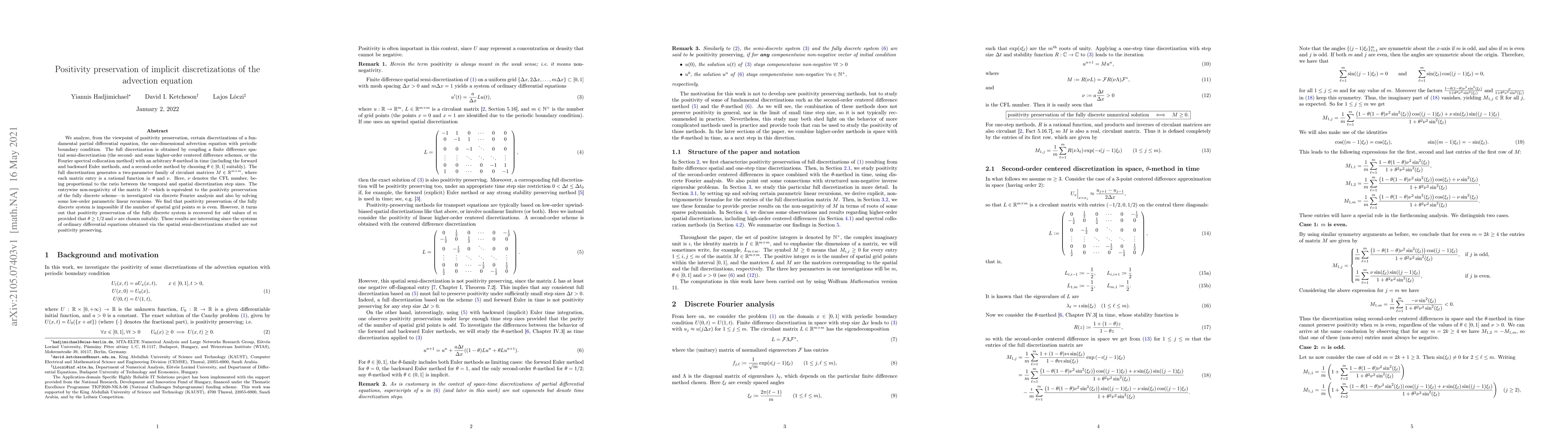 This research paper investigates the preservation of positivity in discretized solutions to the advection equation, finding that certain schemes are non-preserving for even numbers of spatial grid points but recover positivity for odd numbers when using specific time-stepping methods.