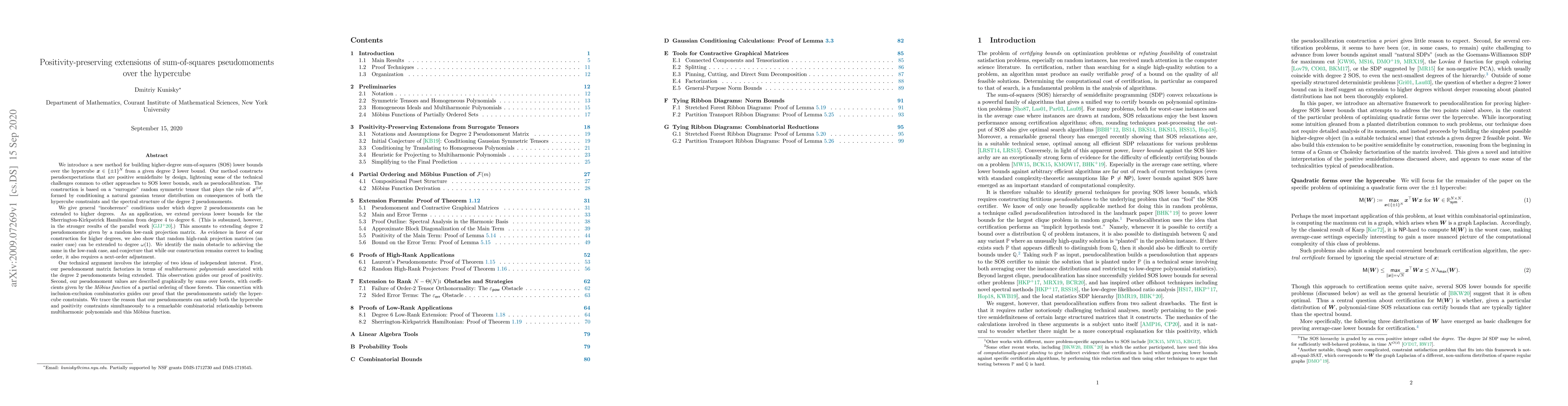 We introduce a new method for building higher-degree sum-of-squares lower bounds over the hypercube $\mathbf{x} \in \{\pm 1\}^N$ from a given degree 2 lower bound. Our method constructs pseudoexpectations that are positive semidefinite by design, lightening some of the technical challenges common to other approaches to SOS lower bounds, such as pseudocalibration. We give general "incoherence" conditions under which degree 2 pseudomoments can be extended to higher degrees. As an application, we extend previous lower bounds for the Sherrington-Kirkpatrick Hamiltonian from degree 4 to degree 6. (This is subsumed, however, in the stronger results of the parallel work of Ghosh et al.) This amounts to extending degree 2 pseudomoments given by a random low-rank projection matrix. As evidence in favor of our construction for higher degrees, we also show that random high-rank projection matrices (an easier case) can be extended to degree $\omega(1)$. We identify the main obstacle to achieving the same in the low-rank case, and conjecture that while our construction remains correct to leading order, it also requires a next-order adjustment. Our technical argument involves the interplay of two ideas of independent interest. First, our pseudomoment matrix factorizes in terms of certain multiharmonic polynomials. This observation guides our proof of positivity. Second, our pseudomoment values are described graphically by sums over forests, with coefficients given by the M\"{o}bius function of a partial ordering of those forests. This connection guides our proof that the pseudomoments satisfy the hypercube constraints. We trace the reason that our pseudomoments can satisfy both the hypercube and positivity constraints simultaneously to a combinatorial relationship between multiharmonic polynomials and this M\"{o}bius function.