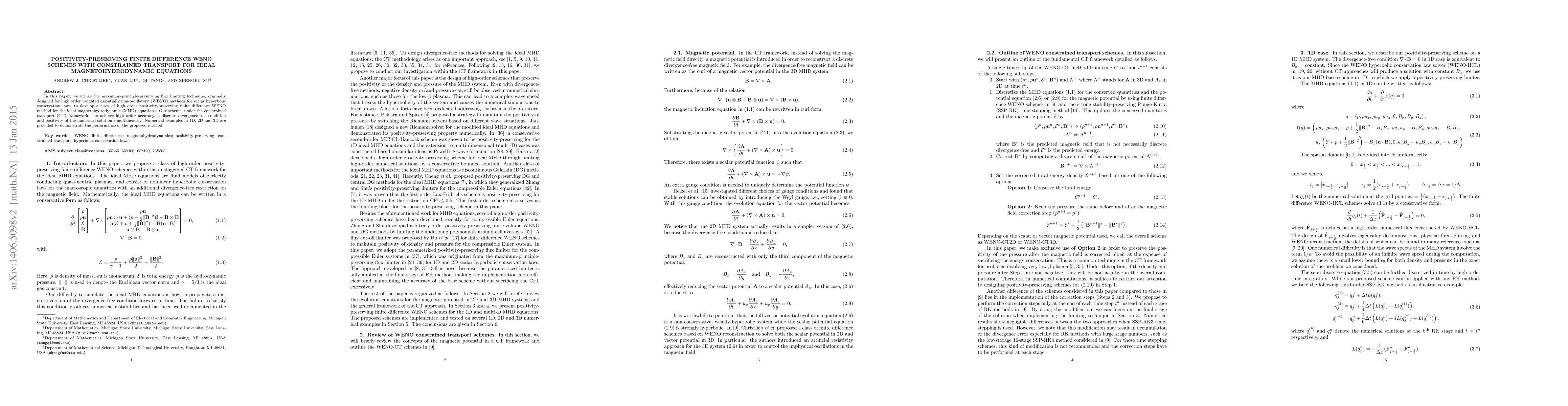The paper proposes high-order positivity-preserving finite difference WENO methods for ideal MHD equations, utilizing maximum-principle-preserving flux limiting techniques within the constrained transport (CT) framework.