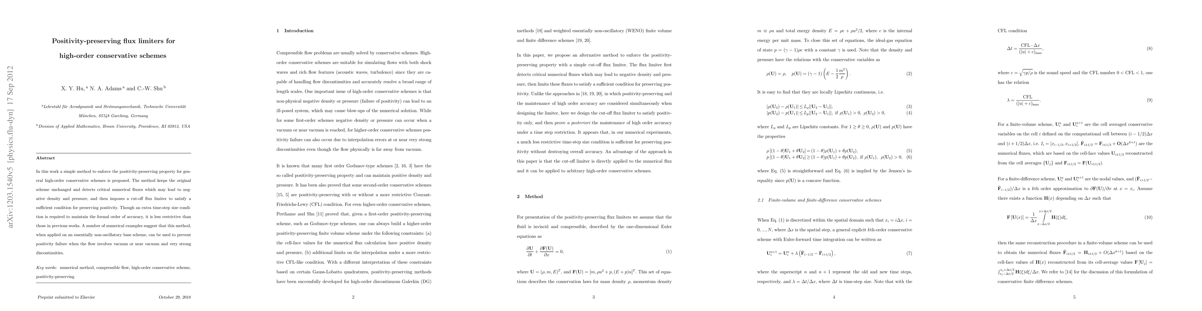 A new method is proposed to preserve positivity in high-order conservative schemes by detecting and limiting critical numerical fluxes that may lead to negative density or pressure values.
