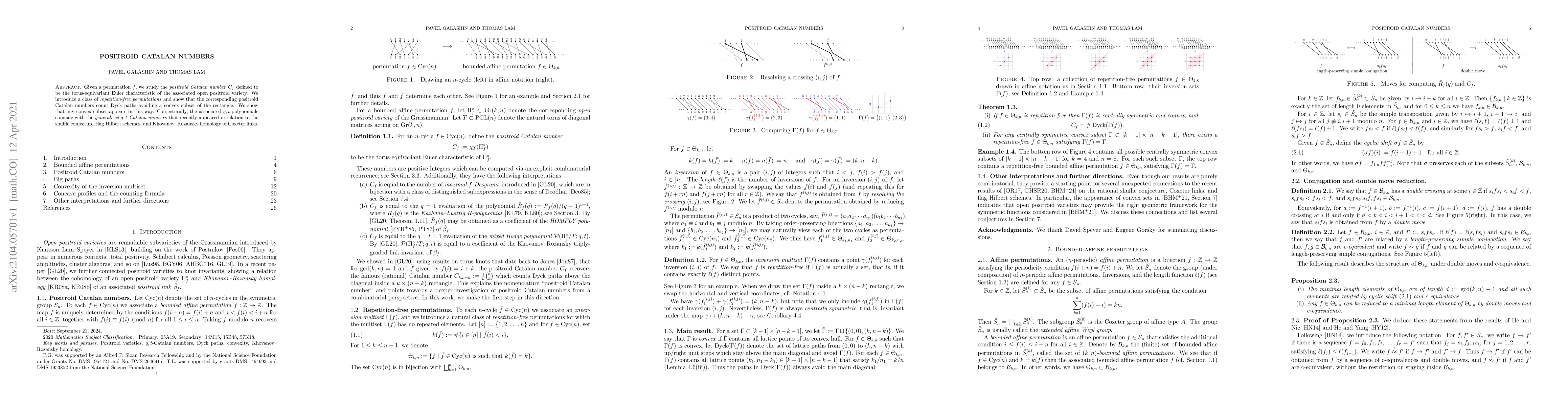 Given a permutation $f$, we study the positroid Catalan number $C_f$ defined to be the torus-equivariant Euler characteristic of the associated open positroid variety. We introduce a class of repetition-free permutations and show that the corresponding positroid Catalan numbers count Dyck paths avoiding a convex subset of the rectangle. We show that any convex subset appears in this way. Conjecturally, the associated $q,t$-polynomials coincide with the generalized $q,t$-Catalan numbers that recently appeared in relation to the shuffle conjecture, flag Hilbert schemes, and Khovanov-Rozansky homology of Coxeter links.