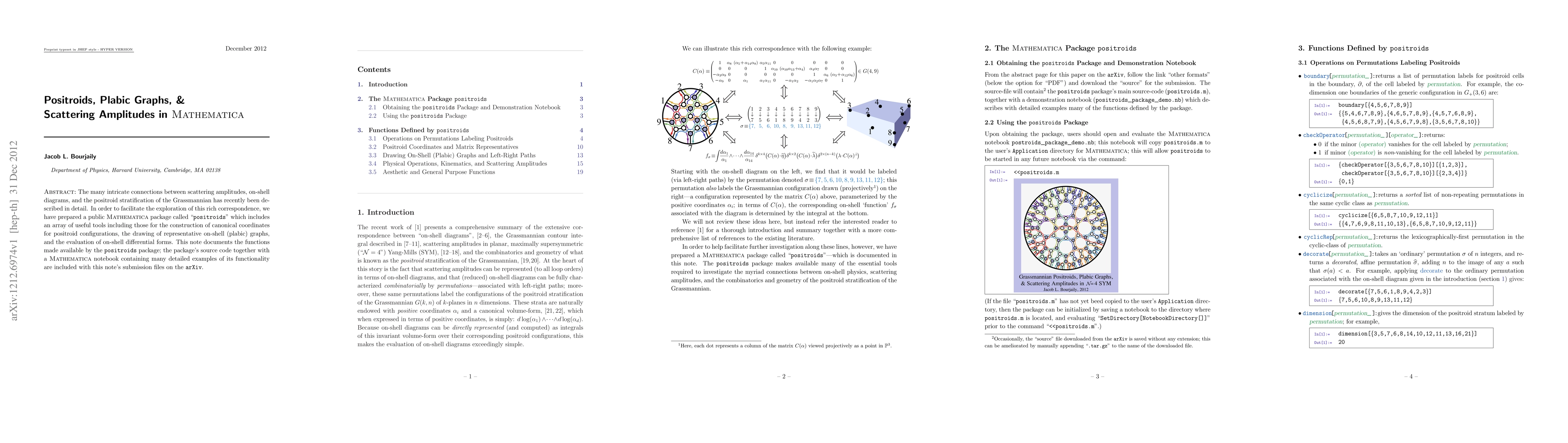 The many intricate connections between scattering amplitudes, on-shell diagrams, and the positroid stratification of the Grassmannian has recently been described in great detail. In order to facilitate the exploration of this rich correspondence, we have prepared a public Mathematica package called "positroids" which includes an array of useful tools including those for the construction of canonical coordinates for positroid configurations, the drawing of representative on-shell (plabic) graphs, and the evaluation of on-shell differential forms. This note documents the functions made available by the positroids package; the package's source code together with a Mathematica notebook containing many detailed examples of its functionality are included with this note's submission files on the arXiv.