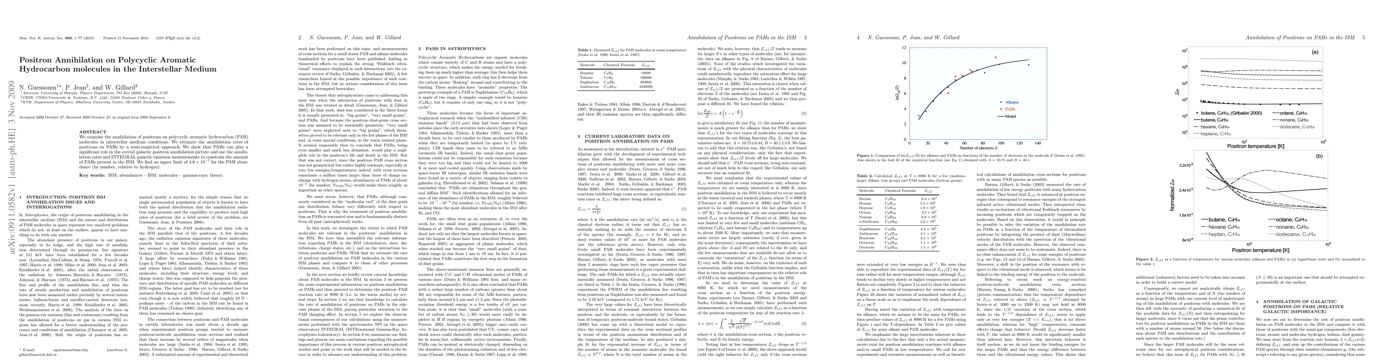 This paper investigates positron annihilation on polycyclic aromatic hydrocarbon (PAH) molecules in the interstellar medium, estimating annihilation rates via a semi-empirical method. The study concludes that PAHs significantly contribute to galactic positron annihilation and determines an upper limit of 4.6 x 10^-7 for PAH abundance in the ISM using INTEGRAL galactic emission data.