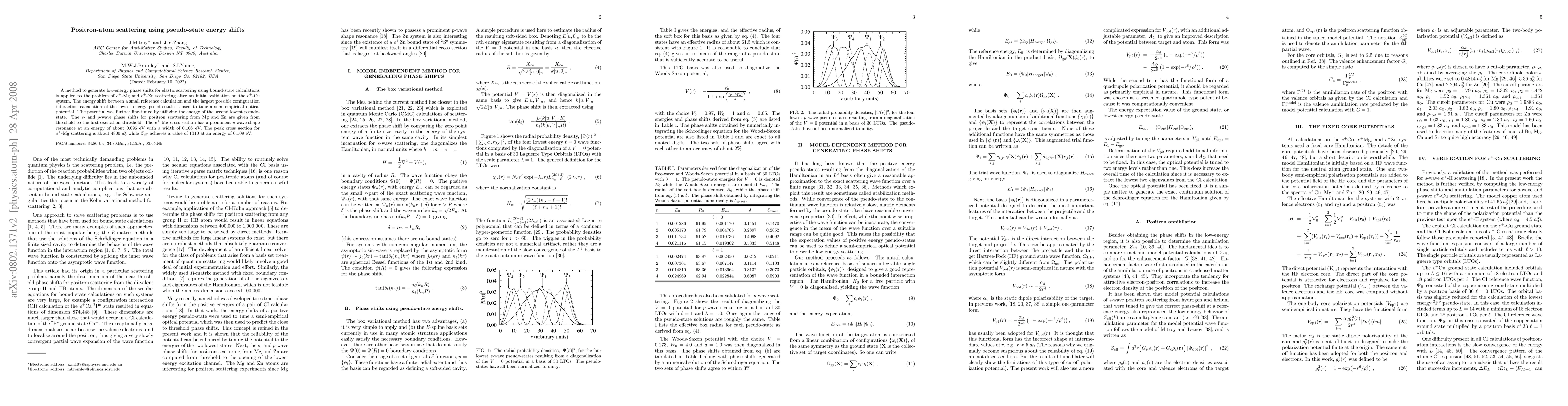 This paper presents a method for generating low-energy phase shifts for positron-atom scattering using pseudo-state energy shifts, validated on e+-Cu, and applied to e+-Mg and e+-Zn systems. The method reveals a prominent p-wave shape resonance in e+-Mg scattering at 0.096 eV with a peak cross section of 4800 a_0^2.