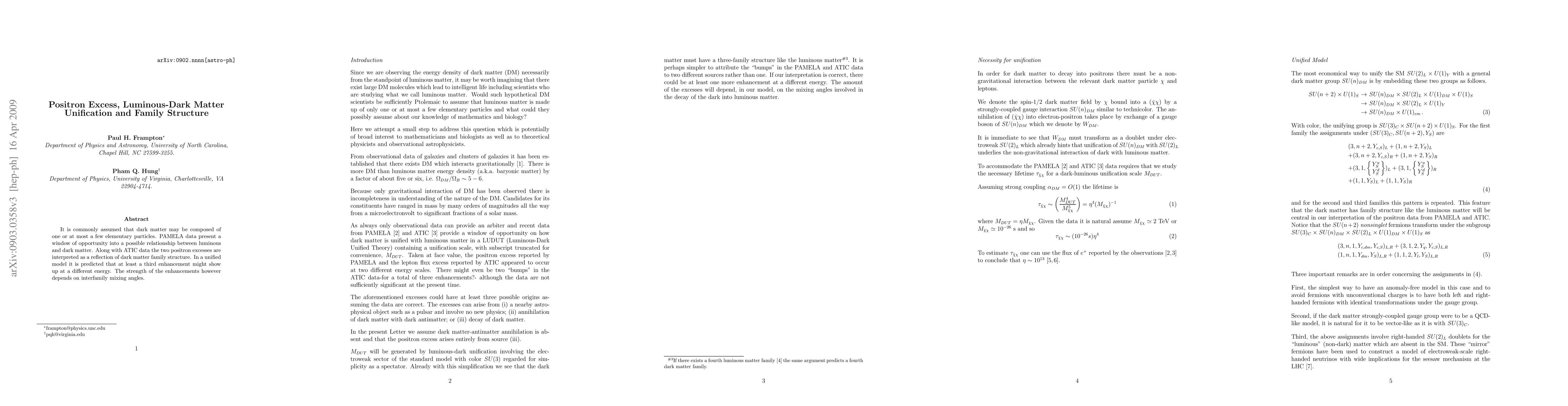 It is commonly assumed that dark matter may be composed of one or at most a few elementary particles. PAMELA data present a window of opportunity into a possible relationship between luminous and dark matter. Along with ATIC data the two positron excesses are interpreted as a reflection of dark matter family structure. In a unified model it is predicted that at least a third enhancement might show up at a different energy. The strength of the enhancements however depends on interfamily mixing angles.