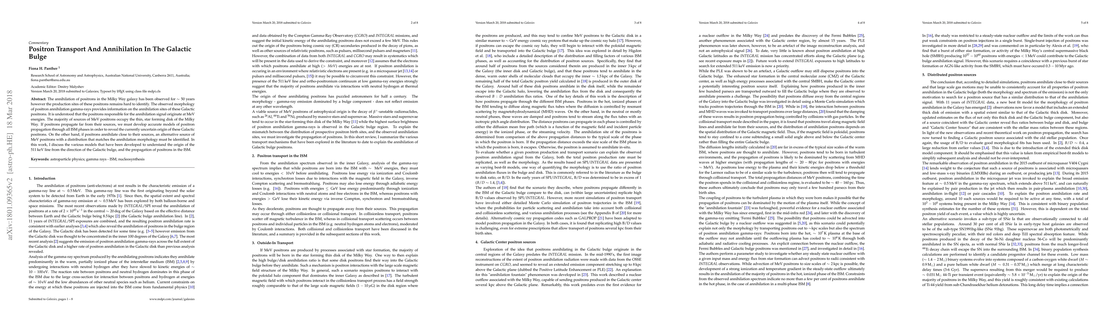 The annihilation of positrons in the Milky Way galaxy has been observed for $\sim 50$ years however the production sites of these positrons remains hard to identify. The observed morphology of positron annihilation gamma-rays provides information on the annihilation sites of these Galactic positrons. It is understood that the positrons responsible for the annihilation signal originate at MeV energies. The majority of sources of MeV positrons occupy the thin, star forming disk of the Milky Way. If positrons propagate far from their sources, we must develop accurate models of positron propagation through all ISM phases in order to reveal the currently uncertain origin of these Galactic positrons. On the other hand, if positrons annihilate close to their sources, an alternative source of MeV positrons with a distribution that matches the annihilation morphology must be identified. In this work, I discuss the various models that have been developed to understand the origin of the $511\,\mathrm{keV}$ line from the direction of the Galactic bulge, and the propagation of positrons in the ISM.