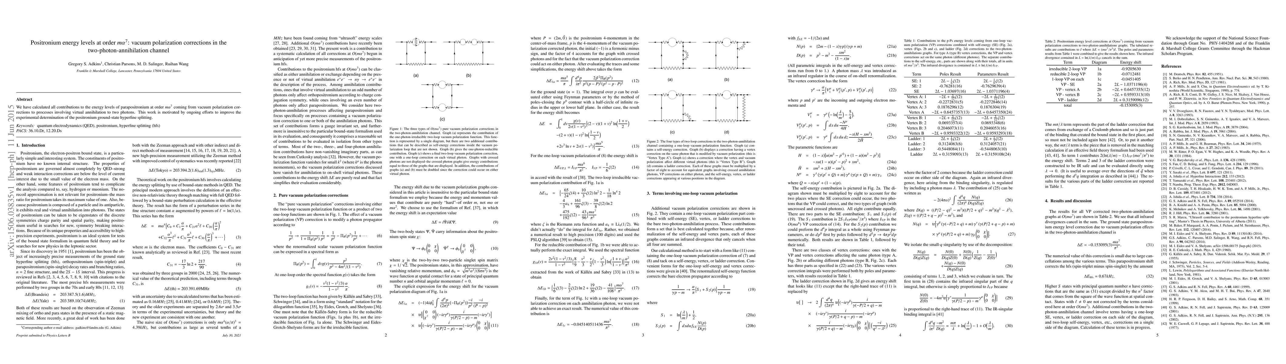 Researchers calculated energy levels of parapositronium at order $m eta^7$ due to vacuum polarization corrections, aiming to improve experimental positronium hyperfine splitting measurements.