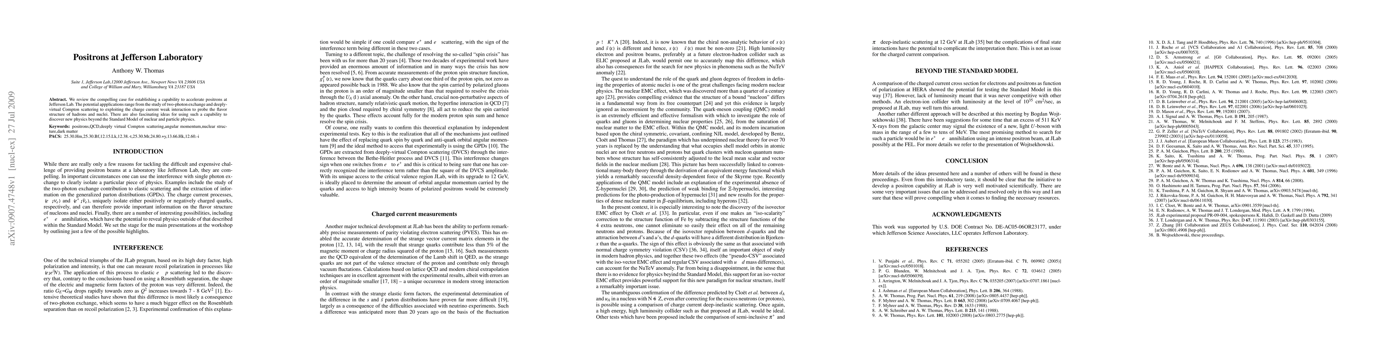 We review the compelling case for establishing a capability to accelerate positrons at Jefferson Lab. The potential appplications range from the study of two-photon exchange and deeply-virtual Compton scattering to exploiting the charge current weak interaction to probe the flavor structure of hadrons and nuclei. There are also fascinating ideas for using such a capability to discover new physics beyond the Standard Model of nuclear and particle physics.