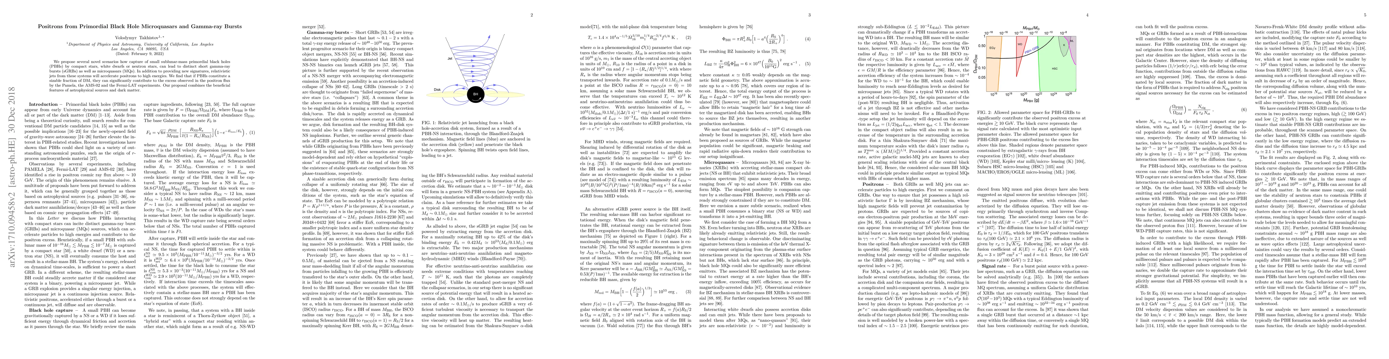 This paper proposes that primordial black holes captured by compact stars can generate short gamma-ray bursts and microquasars, with relativistic jets accelerating positrons. If a significant fraction of dark matter consists of these PBHs, they could account for the observed positron flux excess detected by Pamela, AMS-02, and Fermi-LAT.