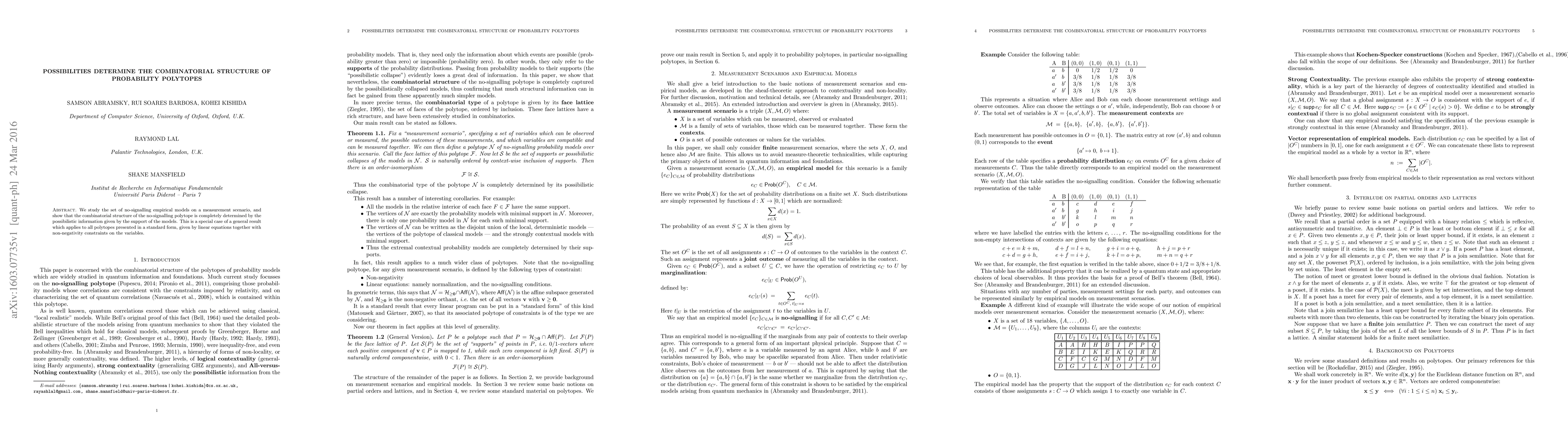 This paper demonstrates that the combinatorial structure of no-signalling polytopes is entirely dictated by the possibilistic information from the support of empirical models. This finding extends to all polytopes defined by linear equations and non-negativity constraints.