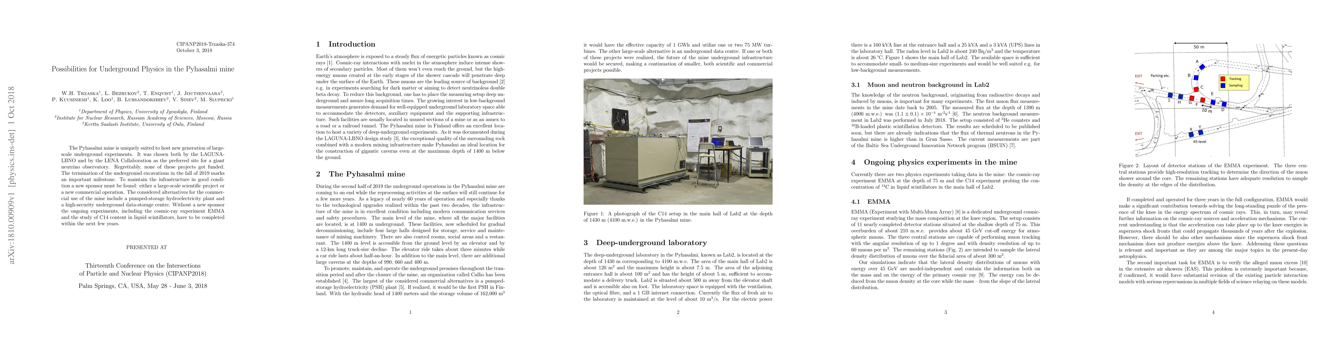 The Pyhäsalmi mine was selected for large-scale neutrino experiments but funding was not secured; now, it requires a new sponsor to maintain infrastructure. Alternatives include a pumped-storage hydroelectricity plant or a high-security underground data-storage center.