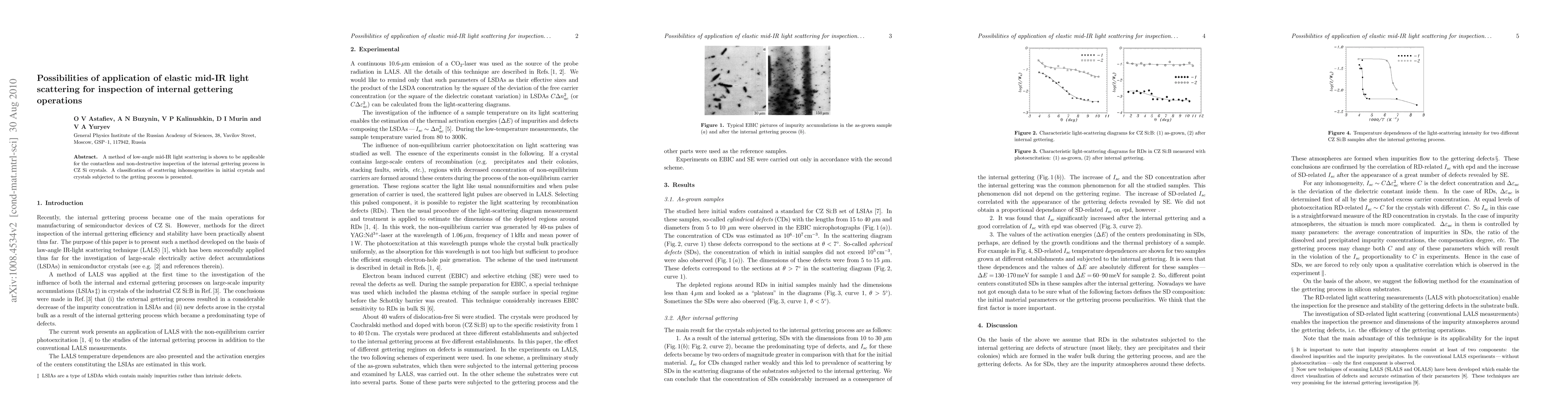 This paper demonstrates the use of low-angle mid-IR light scattering for non-destructive inspection of internal gettering processes in CZ Si crystals, presenting a classification of scattering inhomogeneities before and after the process.