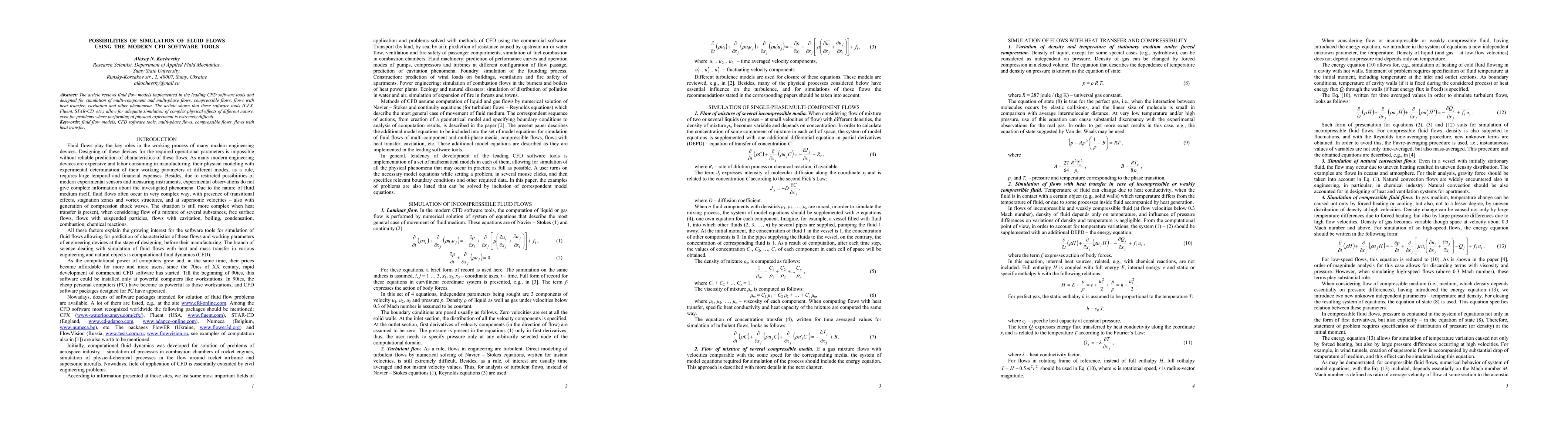 The paper reviews advanced CFD software tools like CFX, Fluent, and STAR-CD for simulating complex fluid flows, including multi-component, multi-phase, and compressible flows. It highlights the capability of these tools to accurately model intricate physical phenomena where physical experiments are impractical.