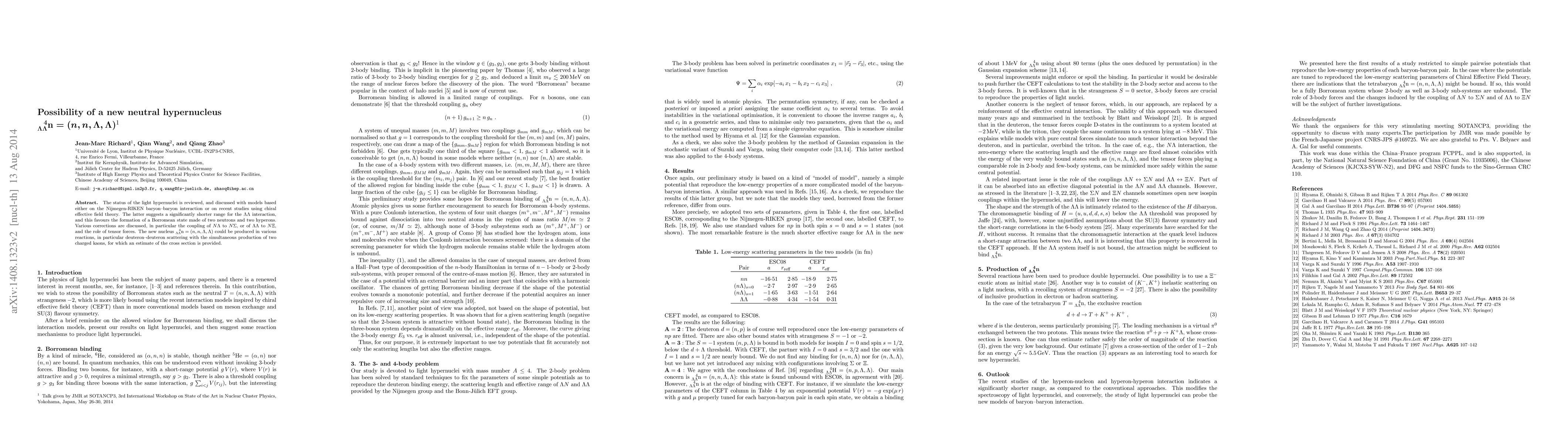 The status of the light hypernuclei is reviewed, and discussed with models based either on the Nijmegen-RIKEN baryon--baryon interaction or on recent studies using chiral effective field theory. The latter suggests a significantly shorter range for the $\Lambda\Lambda$ interaction, and this favours the formation of a Borromean state made of two neutrons and two hyperons. Various corrections are discussed, in particular the coupling of $N\Lambda$ to $N\Sigma$, or of $\Lambda\Lambda$ to $N\Xi$, and the role of tensor forces. The new nucleus $(n,n,\Lambda,\Lambda)$ could be produced in various reactions, in particular deuteron--deuteron scattering with the simultaneous production of two charged kaons, for which an estimate of the cross section is provided.