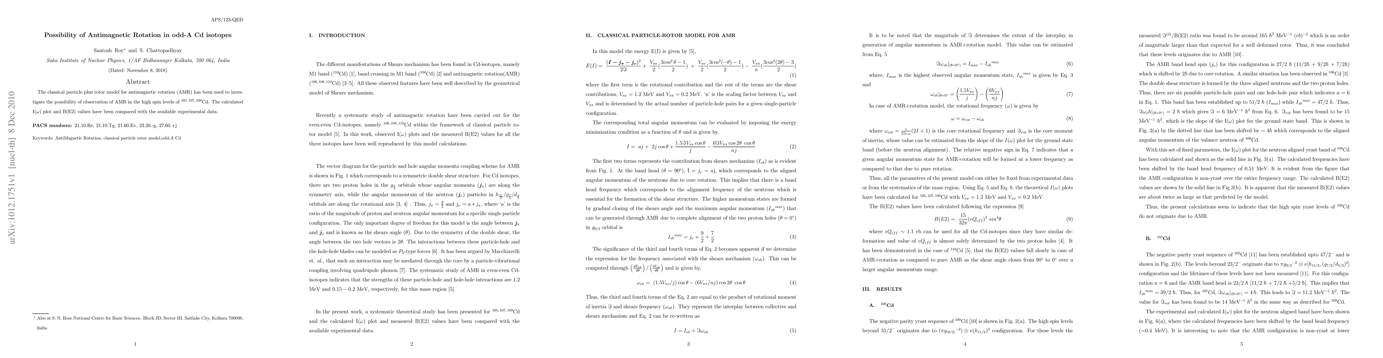 The classical particle plus rotor model for antimagnetic rotation (AMR) has been used to investigate the possibility of observation of AMR in the high spin levels of $^{105,\,107,\,109}$Cd. The calculated I($\omega$) plot and B(E2) values have been compared with the available experimental data.