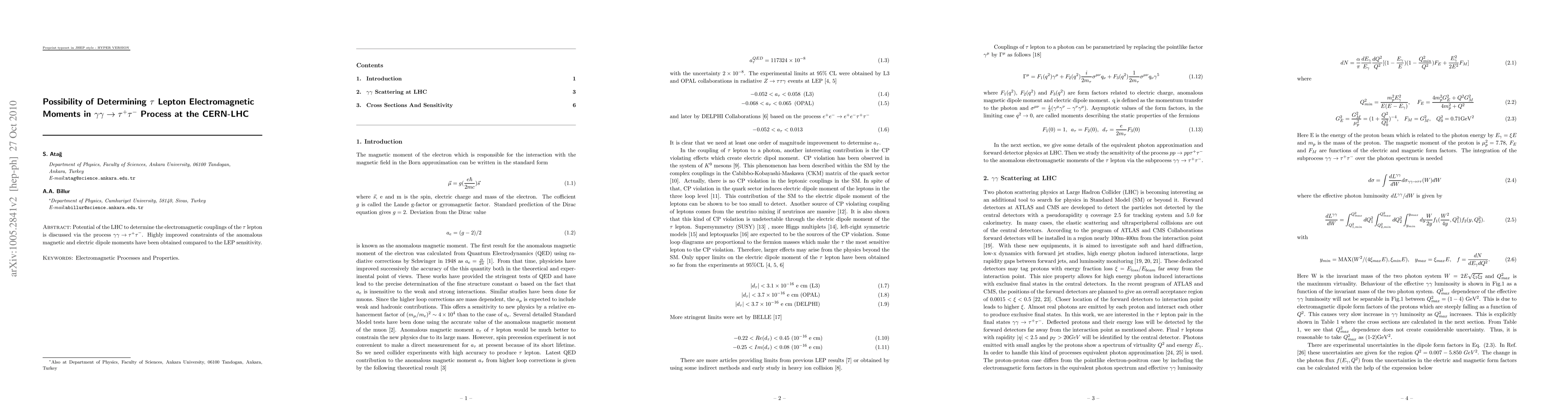 This paper explores the potential of the CERN-LHC to determine the electromagnetic couplings of the $\tau$ lepton through the process $\gamma\gamma \to \tau^{+}\tau^{-}$. It reports significantly improved constraints on the anomalous magnetic and electric dipole moments compared to previous LEP measurements.