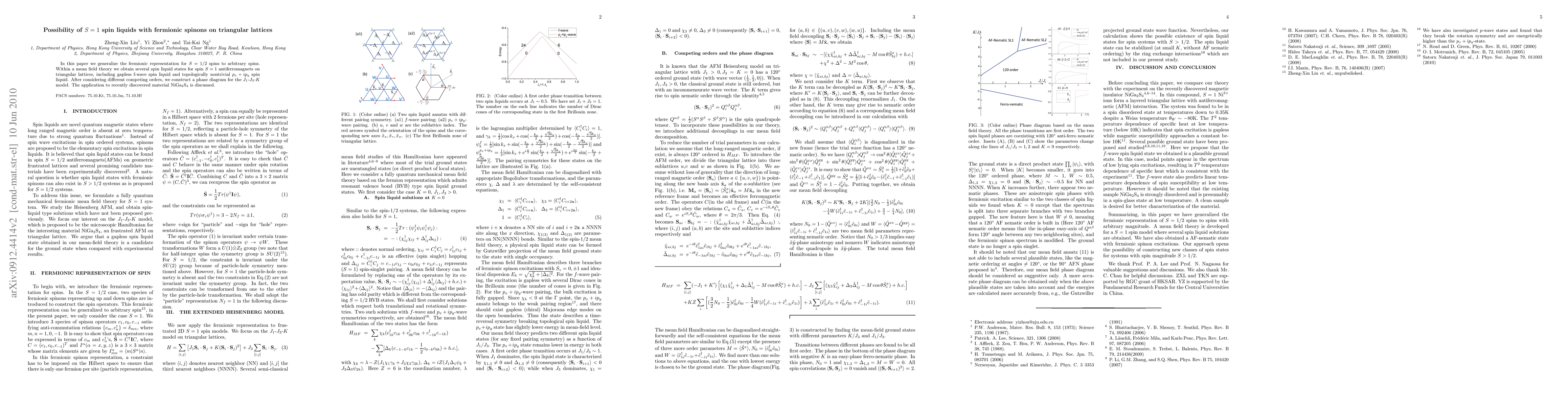 In this paper we generalize the fermionic representation for $S=1/2$ spins to arbitrary spins. Within a mean field theory we obtain several spin liquid states for spin $S=1$ antiferromagnets on triangular lattices, including gapless f-wave spin liquid and topologically nontrivial $p_x+ip_y$ spin liquid. After considering different competing orders, we construct a phase diagram for the $J_1$-$J_3$-$K$ model. The application to recently discovered material $\mathrm{NiGa_2S_4}$ is discussed.