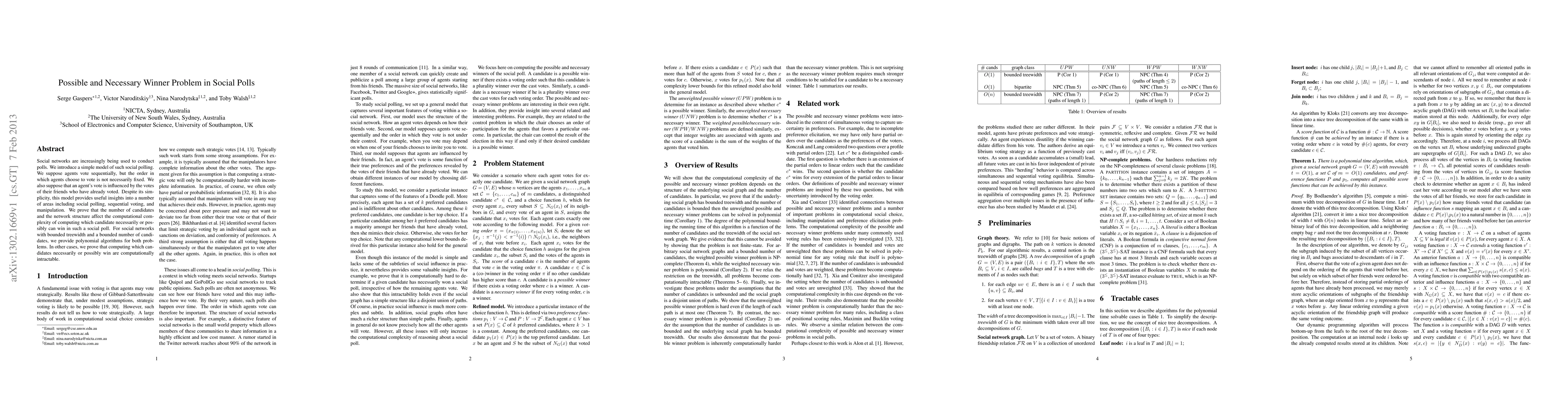 Social networks are increasingly being used to conduct polls. We introduce a simple model of such social polling. We suppose agents vote sequentially, but the order in which agents choose to vote is not necessarily fixed. We also suppose that an agent's vote is influenced by the votes of their friends who have already voted. Despite its simplicity, this model provides useful insights into a number of areas including social polling, sequential voting, and manipulation. We prove that the number of candidates and the network structure affect the computational complexity of computing which candidate necessarily or possibly can win in such a social poll. For social networks with bounded treewidth and a bounded number of candidates, we provide polynomial algorithms for both problems. In other cases, we prove that computing which candidates necessarily or possibly win are computationally intractable.