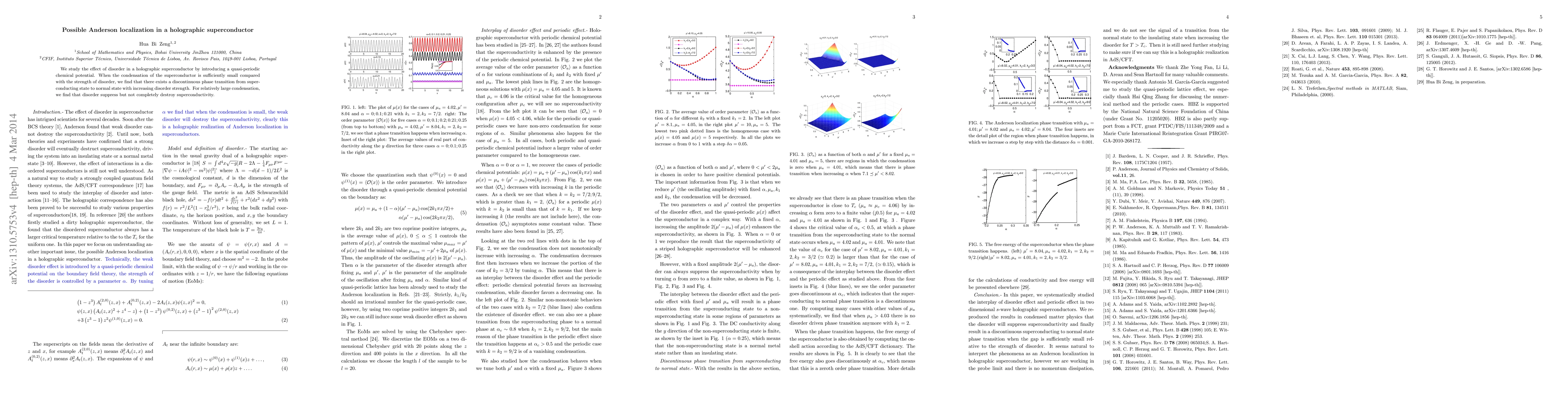 This paper investigates the impact of disorder on a holographic superconductor using a quasi-periodic chemical potential, finding a phase transition from superconductivity to a normal state with increasing disorder and partial suppression of superconductivity at larger condensation levels, potentially representing Anderson localization.