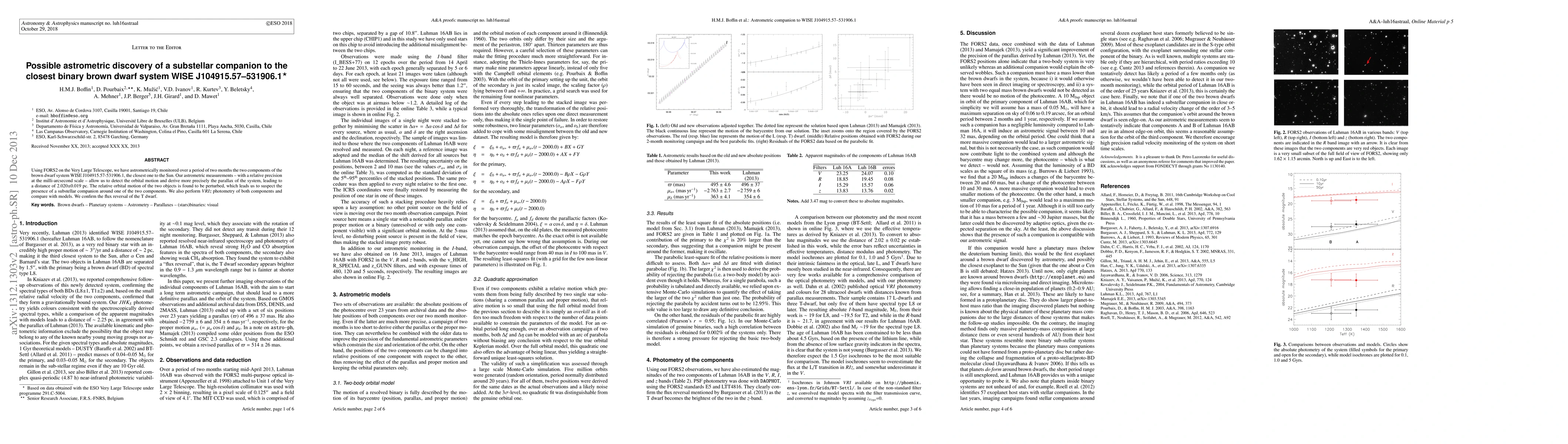 Using FORS2 on the Very Large Telescope, we have astrometrically monitored over a period of two months the two components of the brown dwarf system WISE J104915.57-531906.1, the closest one to the Sun. Our astrometric measurements - with a relative precision at the milli-arcsecond scale - allow us to detect the orbital motion and derive more precisely the parallax of the system, leading to a distance of 2.020+/-0.019 pc. The relative orbital motion of the two objects is found to be perturbed, which leads us to suspect the presence of a substellar companion around one of the two components. We also perform VRIz photometry of both components and compare with models. We confirm the flux reversal of the T dwarf.