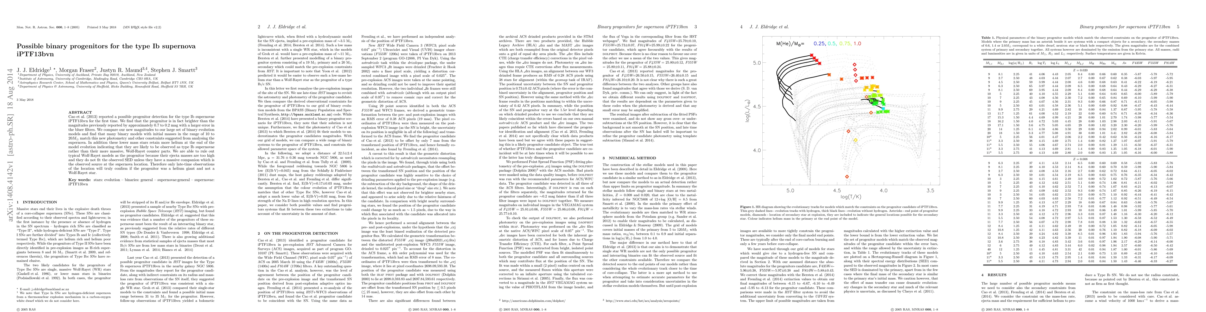 A study refines the possible progenitor of type Ib supernova iPTF13bvn to a helium giant with initial masses between 10-20 solar masses, contradicting earlier reports of Wolf-Rayet star progenitors.