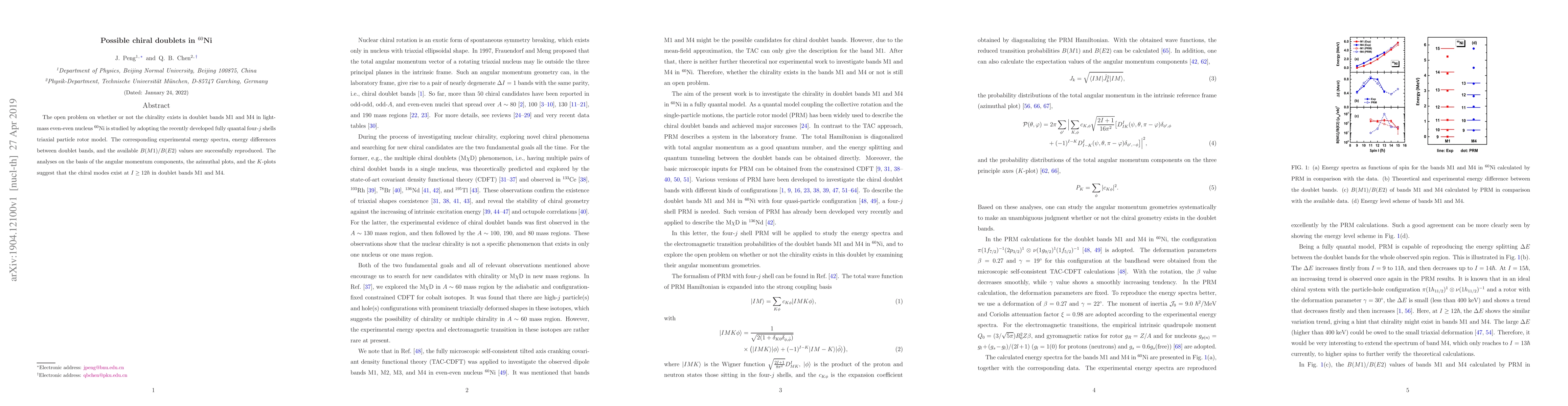 The open problem on whether or not the chirality exists in doublet bands M1 and M4 in light-mass even-even nucleus $^{60}$Ni is studied by adopting the recently developed fully quantal four-$j$ shells triaxial particle rotor model. The corresponding experimental energy spectra, energy differences between doublet bands, and the available $B(M1)/B(E2)$ values are successfully reproduced. The analyses on the basis of the angular momentum components, the azimuthal plots, and the $K$-plots suggest that the chiral modes exist at $I\geq 12\hbar$ in doublet bands M1 and M4.