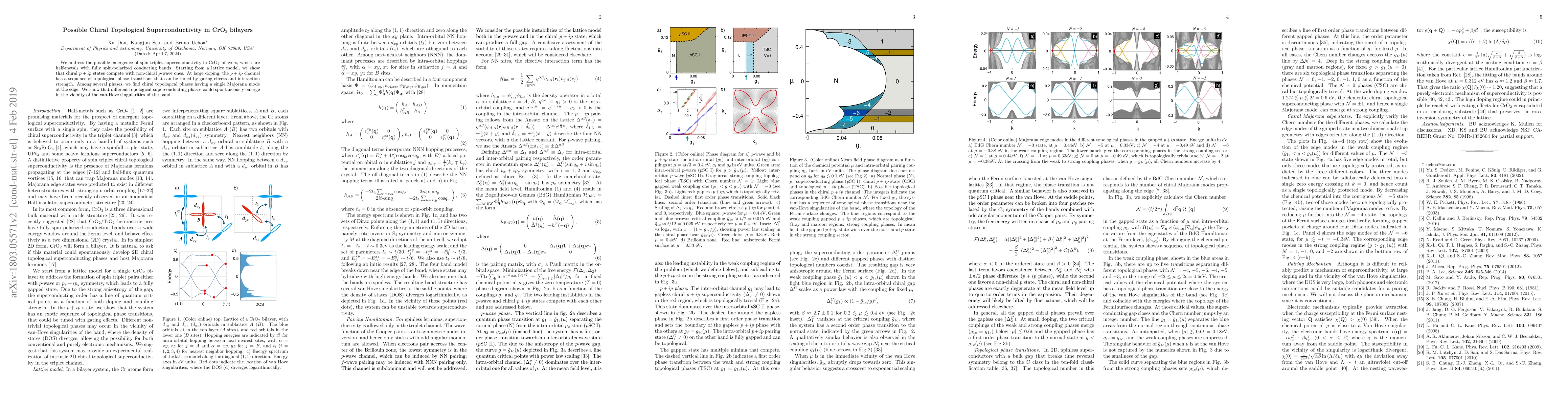 Researchers explore possible chiral topological superconductivity in CrO2 bilayers, finding sequences of topological phase transitions that can be tuned by gating effects and interaction strength, leading to the emergence of single Majorana modes at the edge.