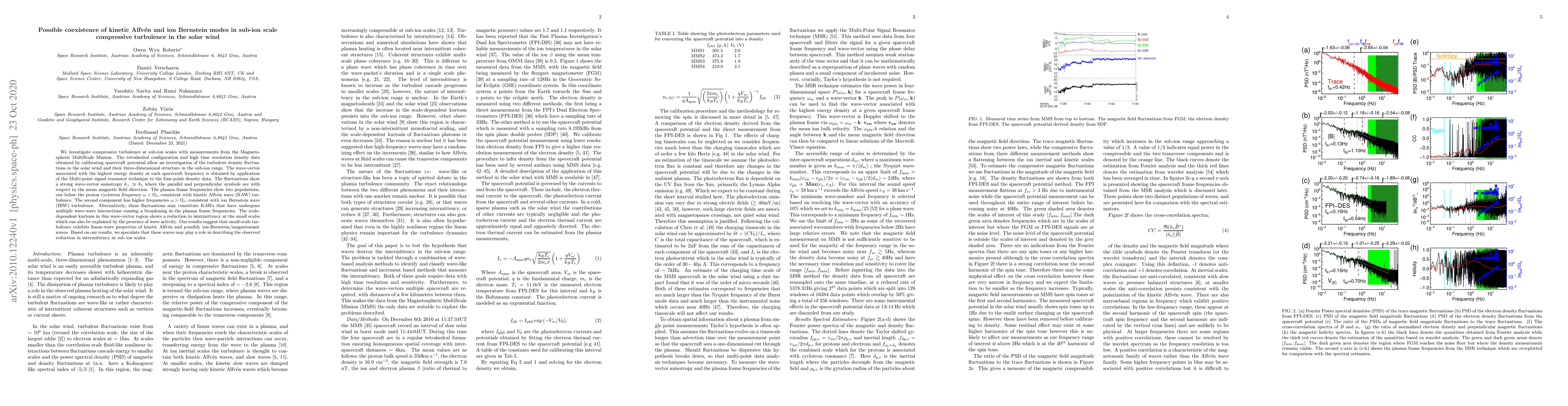 This research investigates sub-ion scale compressive turbulence in the solar wind using high-resolution data from the Magnetospheric MultiScale Mission, revealing the coexistence of kinetic Alfv\'en waves and ion Bernstein waves through wave-vector anisotropy and frequency analysis. The findings suggest these waves may contribute to the observed reduction in intermittency at small scales.