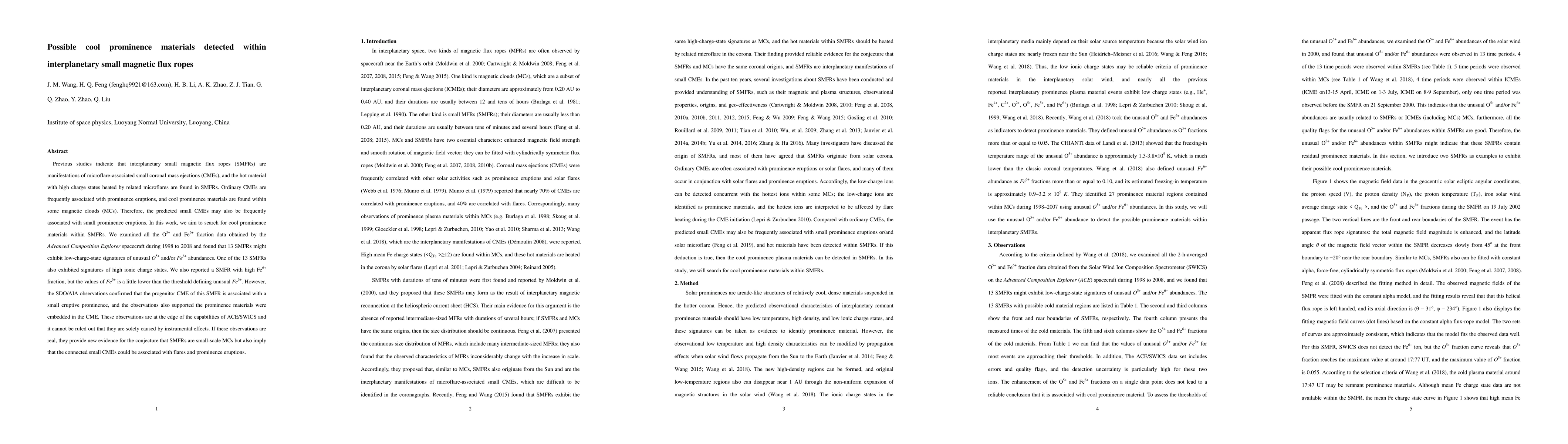 Previous studies indicate that interplanetary small magnetic flux ropes (SMFRs) are manifestations of microflare-associated small coronal mass ejections (CMEs), and the hot material with high charge states heated by related microflares are found in SMFRs. Ordinary CMEs are frequently associated with prominence eruptions,and cool prominencematerialsare found within some magnetic clouds (MCs). Therefore, the predicted small CMEs may also be frequently associated with small prominence eruptions. In this work, we aim to search for cool prominence materials within SMFRs.We examined all the O5+ and Fe6+ fraction data obtained by the Advanced Composition Explorer spacecraft during 1998 to 2008 and found that 13 SMFRs might exhibit low-charge-state signatures of unusual O5+and/or Fe6+abundances.One of the 13 SMFRs also exhibited signatures of high ionic charge states. We also reported a SMFR with highFe6+ fraction, but the values of Fe6+is a little lower than the threshold defining unusualFe6+.However, the SDO/AIA observations confirmed that the progenitor CME of this SMFR is associated with a small eruptive prominence, and the observations also supported the prominence materials were embedded in the CME.These observations are at the edge of the capabilities of ACE/SWICS and it cannot be ruled out that they are solely caused by instrumental effects. If these observations are real, they provide new evidence for the conjecture that SMFRs are small-scale MCs but also imply that the connected small CMEs could be associated with flares and prominence eruptions.