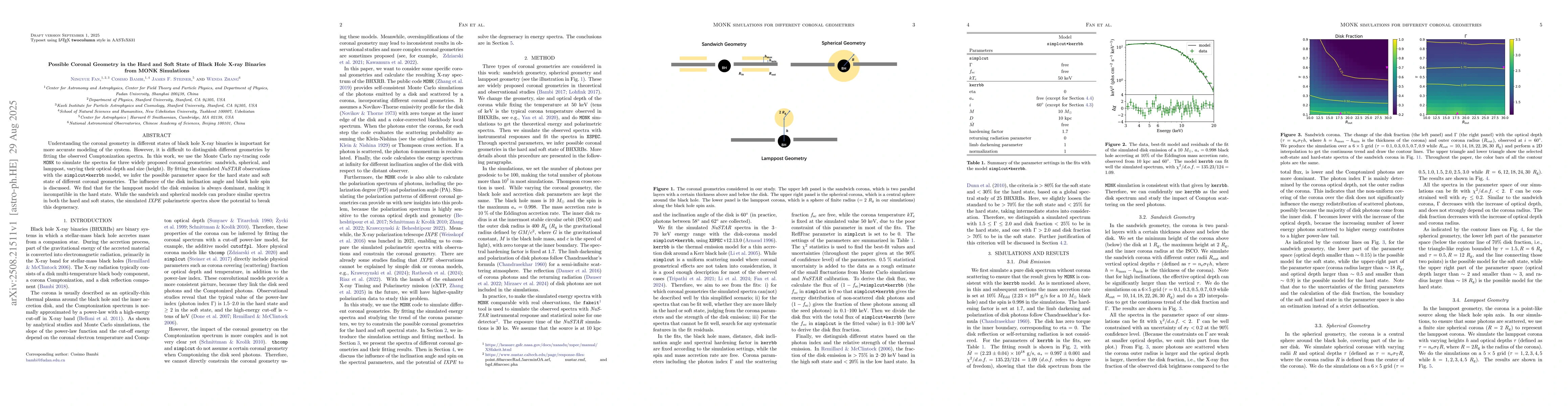 Understanding the coronal geometry in different states of black hole X-ray binaries is important for more accurate modeling of the system. However, it is difficult to distinguish different geometries by fitting the observed Comptonization spectra. In this work, we use the Monte Carlo ray-tracing code MONK to simulate the spectra for three widely proposed coronal geometries: sandwich, spherical, and lamppost, varying their optical depth and size (height). By fitting the simulated NuSTAR observations with the simplcut*kerrbb model, we infer the possible parameter space for the hard state and soft state of different coronal geometries. The influence of the disk inclination angle and black hole spin is discussed. We find that for the lamppost model the disk emission is always dominant, making it incompatible in the hard state. While the sandwich and spherical models can produce similar spectra in both the hard and soft states, the simulated IXPE polarimetric spectra show the potential to break this degeneracy.