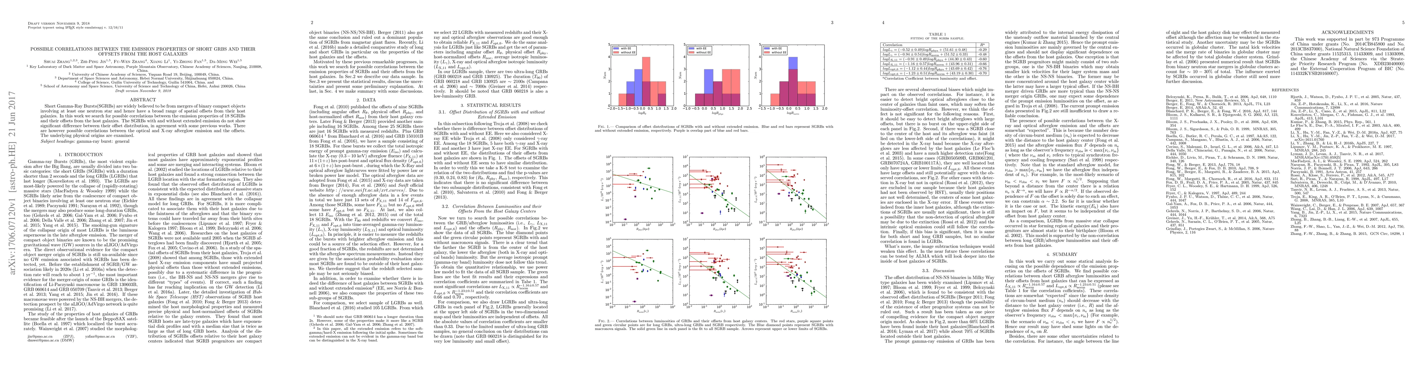 This study investigates correlations between the emission properties of 18 short Gamma-Ray Bursts (SGRBs) and their offsets from host galaxies, finding no significant difference in offset distribution between SGRBs with and without extended emission. However, potential correlations between optical and X-ray afterglow emissions and offsets are identified, with underlying physical origins explored.