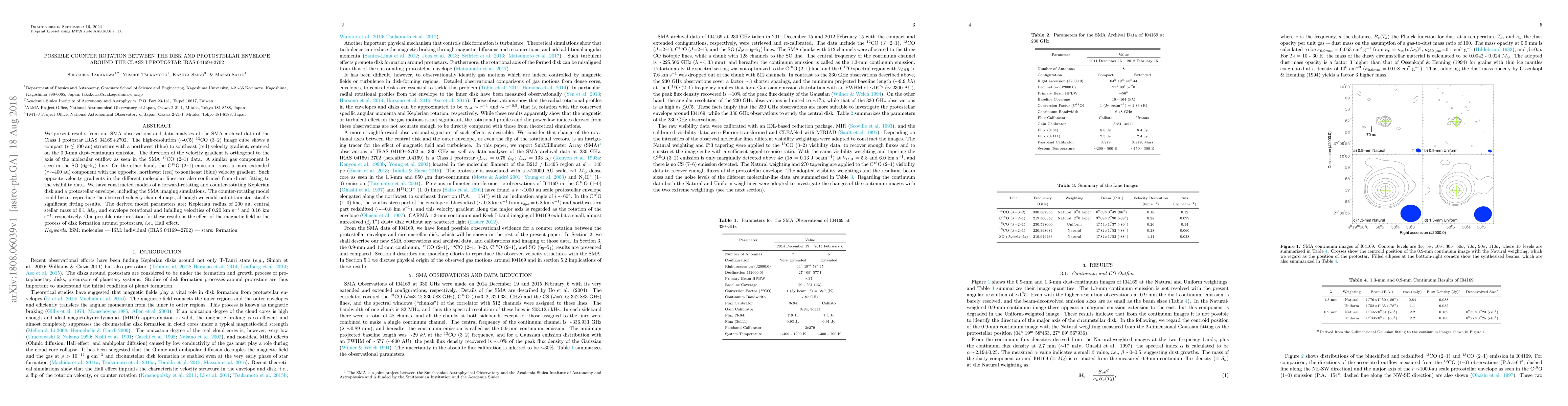 This study presents evidence of possible counter-rotation between the disk and protostellar envelope around the Class I protostar IRAS 04169+2702, based on SMA observations. The counter-rotating model better fits the observed velocity gradients, suggesting a complex interaction possibly influenced by magnetic fields during disk formation.