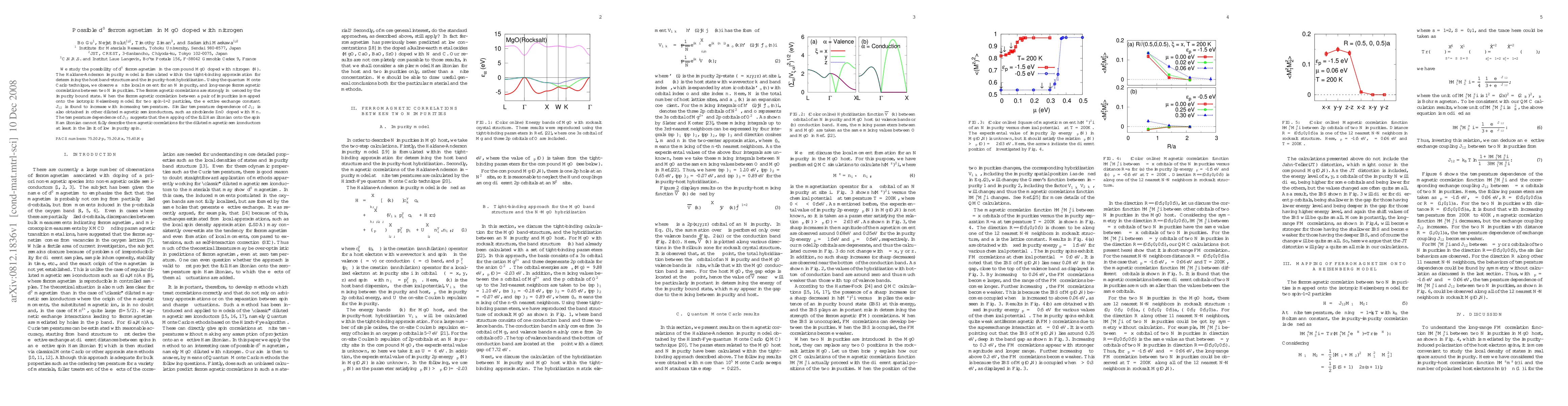 The research explores d0 ferromagnetism in nitrogen-doped MgO using the Haldane-Anderson impurity model and quantum Monte Carlo technique. It discovers a finite local moment for N impurities and long-range ferromagnetic correlations, with effective exchange constant J12 increasing with temperature. This behavior is also found in Mn-doped ZnO, suggesting a common trend in diluted magnetic semiconductors.