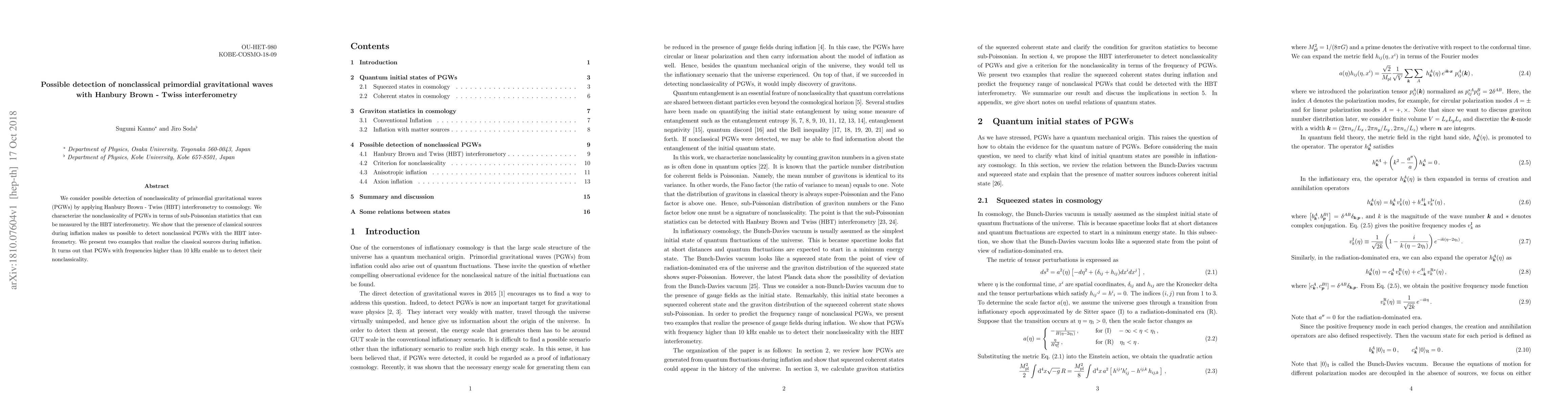 This paper explores the potential use of Hanbury Brown-Twiss interferometry to detect the nonclassicality of primordial gravitational waves through sub-Poissonian statistics. It demonstrates that classical sources during inflation can enable the detection of nonclassical primordial gravitational waves, particularly those with frequencies above 10 kHz.