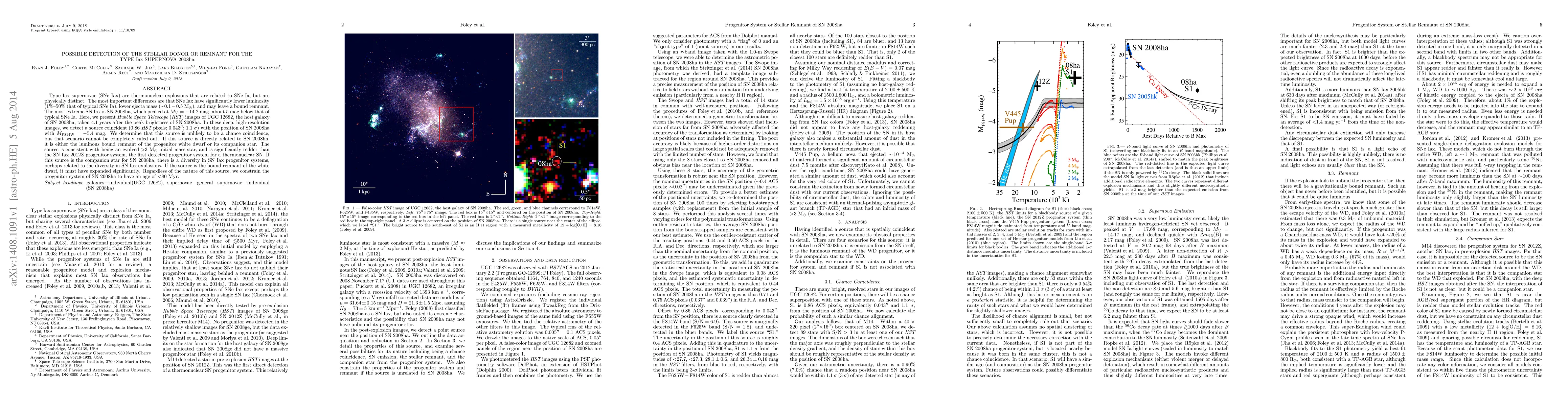 Researchers used Hubble Space Telescope images to detect a faint source near the location of SN 2008ha, a low-luminosity supernova. This source, likely the progenitor's companion star or a bound remnant, suggests diversity in SN Iax progenitor systems or significant expansion of the white dwarf, respectively. The progenitor system's age is constrained to be less than 80 Myr.