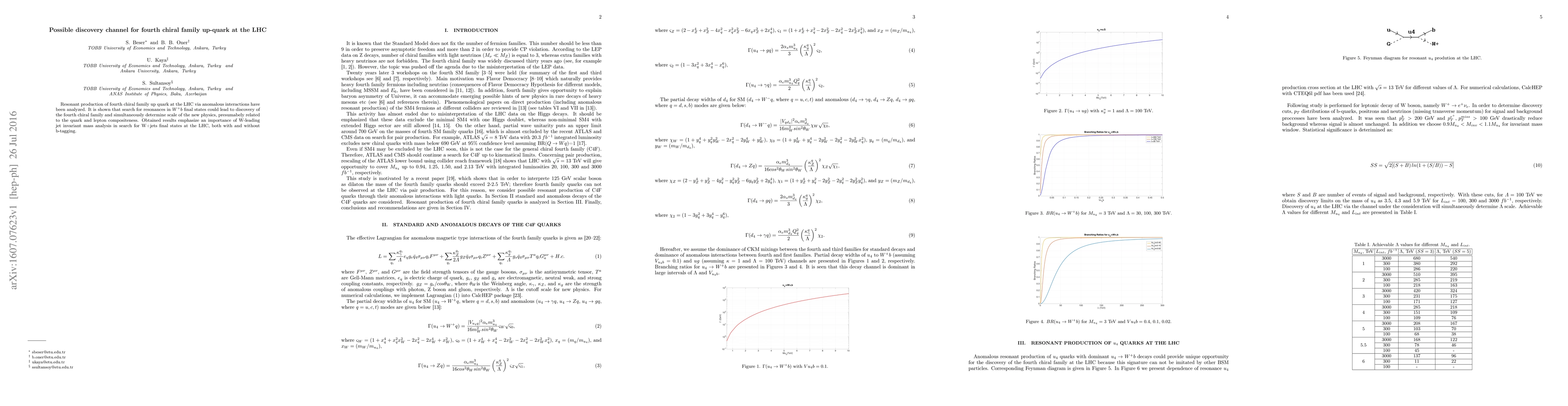 This paper explores the potential discovery of a fourth chiral family up-quark at the LHC through anomalous interactions, suggesting that resonant production in W+b final states could reveal this new particle and determine the scale of associated new physics, likely tied to quark and lepton compositeness. The study highlights the significance of analyzing the W-leading jet invariant mass in W+jets final states for detection.