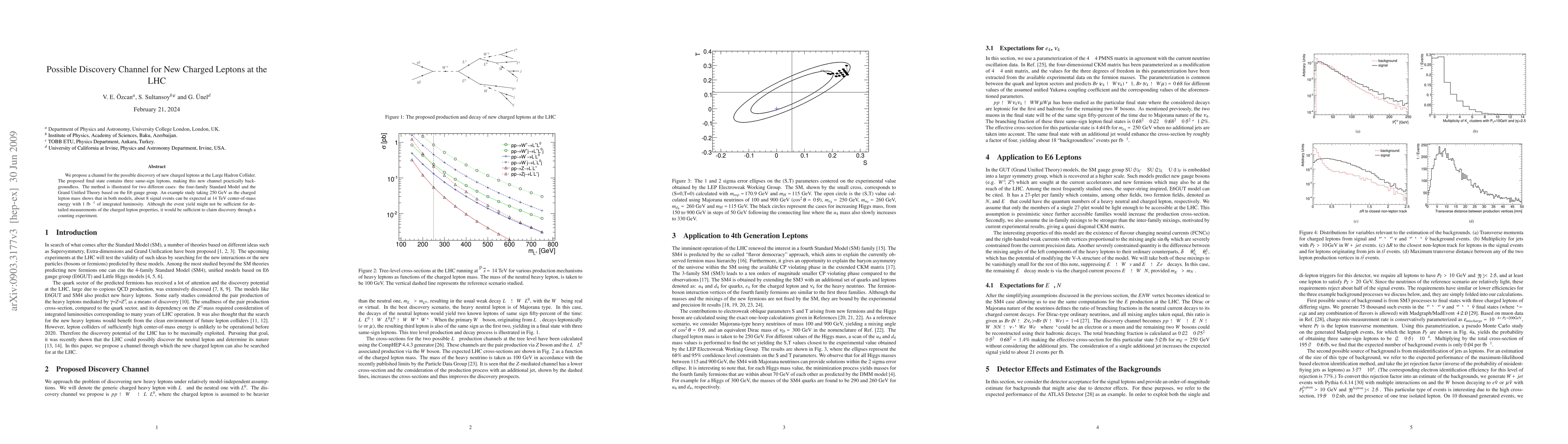 We propose a channel for the possible discovery of new charged leptons at the Large Hadron Collider. The proposed final state contains three same-sign leptons, making this new channel practically back- groundless. The method is illustrated for two different cases: the four-family Standard Model and the Grand Unified Theory based on the E6 gauge group. An example study taking 250 GeV as the charged lepton mass shows that in both models, about 8 signal events can be expected at 14 TeV center-of-mass energy with 1 fb^-1 of integrated luminosity. Although the event yield might not be sufficient for detailed measurements of the charged lepton properties, it would be sufficient to claim discovery through a counting experiment.