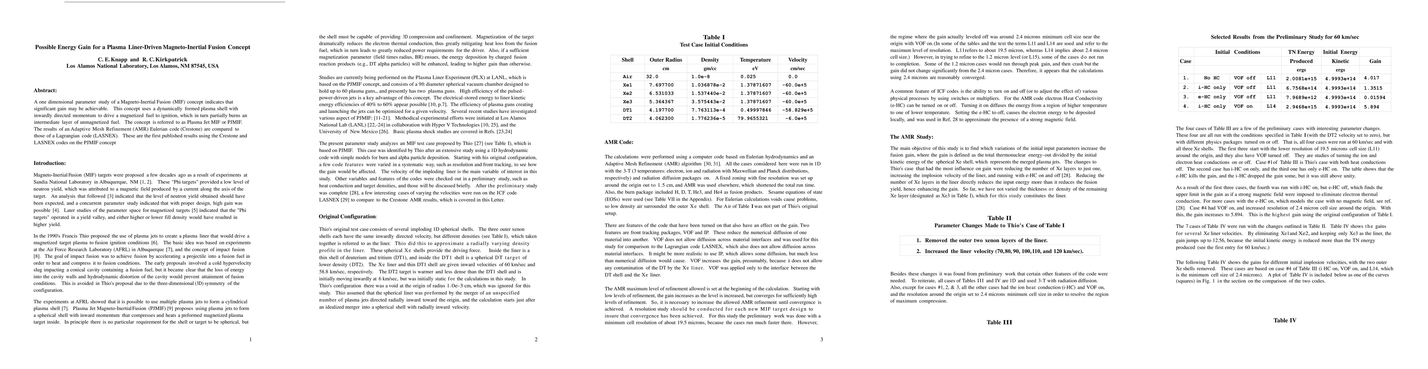 This research paper explores the Plasma Jet Magneto-Inertial Fusion (PJMIF) concept, indicating significant energy gain potential through a dynamically formed plasma shell driving magnetized fuel ignition. Initial results from adaptive mesh refinement Eulerian and Lagrangian codes suggest promising outcomes for this fusion approach.