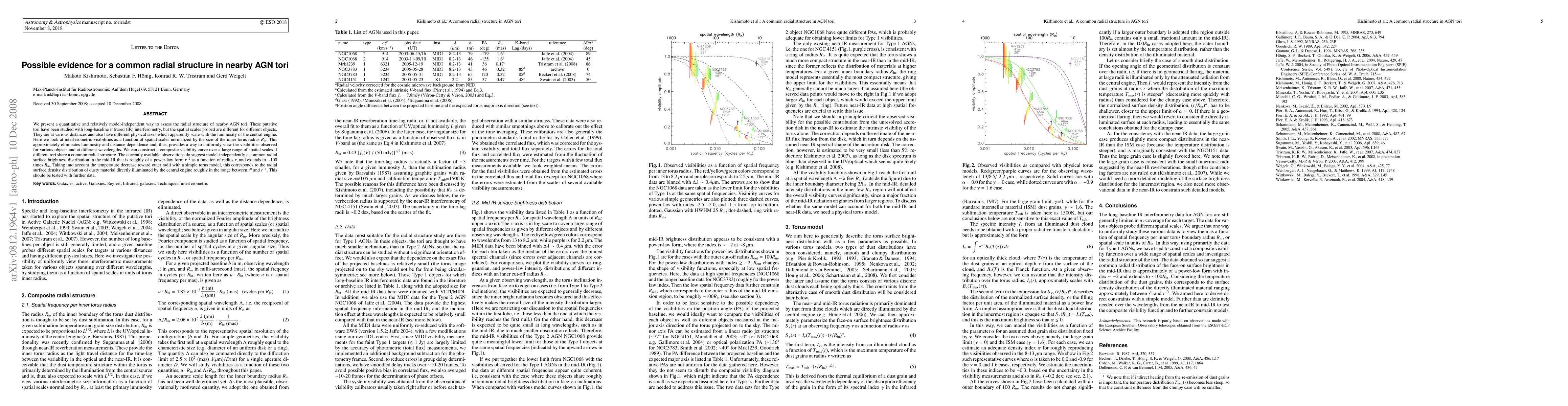 We present a quantitative and relatively model-independent way to assess the radial structure of nearby AGN tori. These putative tori have been studied with long-baseline infrared (IR) interferometry, but the spatial scales probed are different for different objects. They are at various distances and also have different physical sizes which apparently scale with the luminosity of the central engine. Here we look at interferometric visibilities as a function of spatial scales normalized by the size of the inner torus radius R_in. This approximately eliminates luminosity and distance dependence and, thus, provides a way to uniformly view the visibilities observed for various objects and at different wavelengths. We can construct a composite visibility curve over a large range of spatial scales if different tori share a common radial structure. The currently available observations do suggest model-independently a common radial surface brightness distribution in the mid-IR that is roughly of a power-law form r^-2 as a function of radius r, and extends to ~100 times R_in. Taking into account the temperature decrease toward outer radii with a simple torus model, this corresponds to the radial surface density distribution of dusty material directly illuminated by the central engine roughly in the range between r^0 and r^-1. This should be tested with further data.